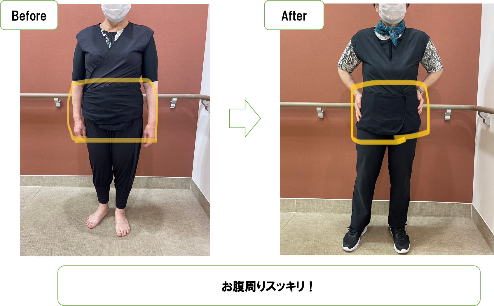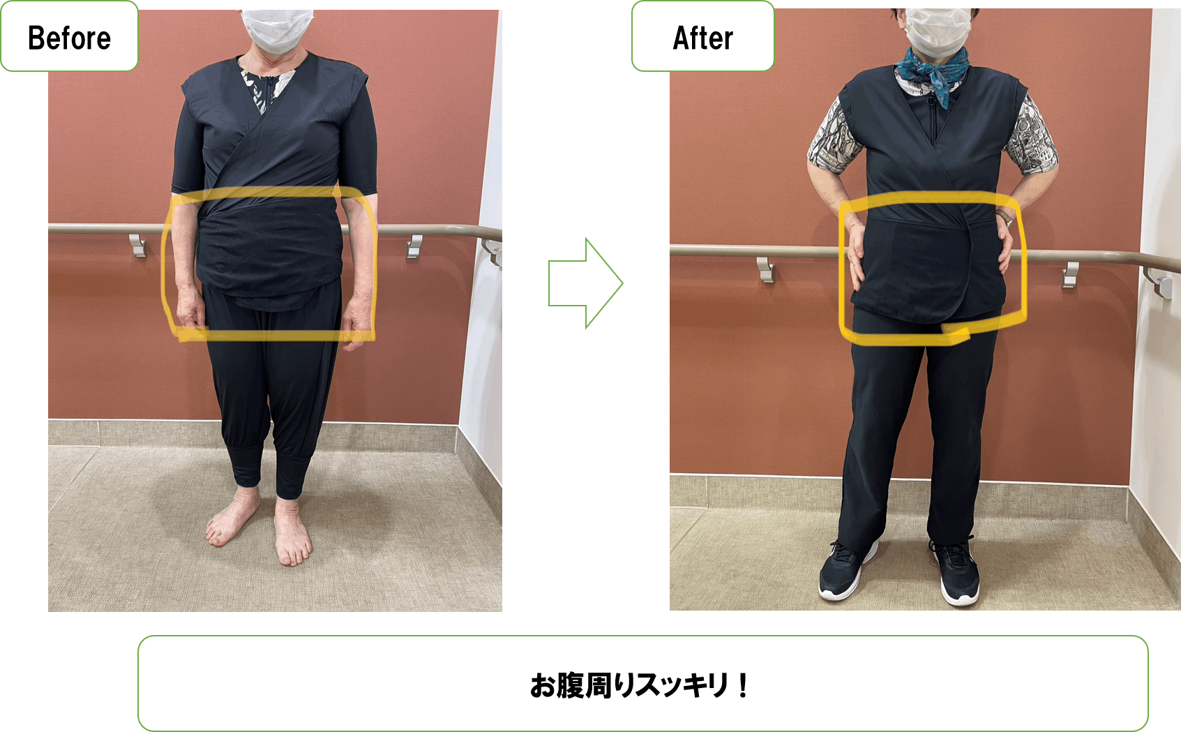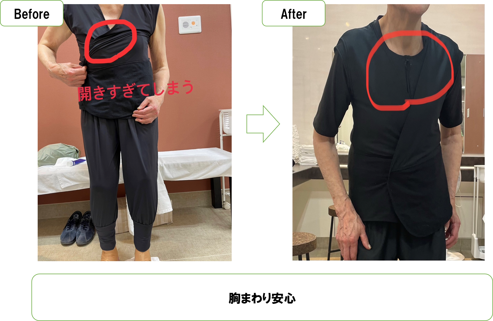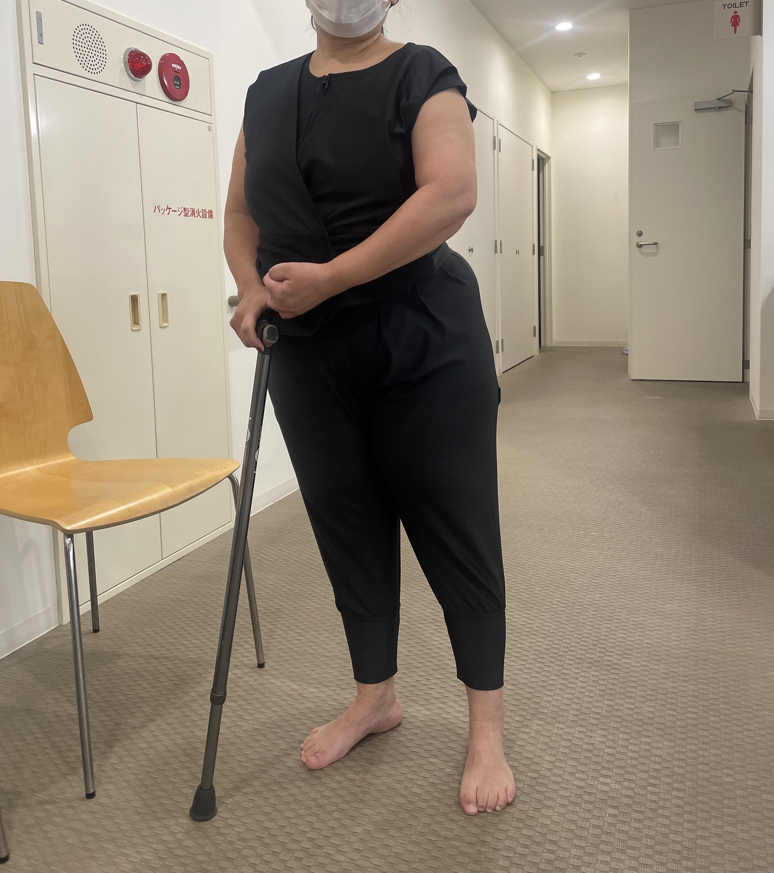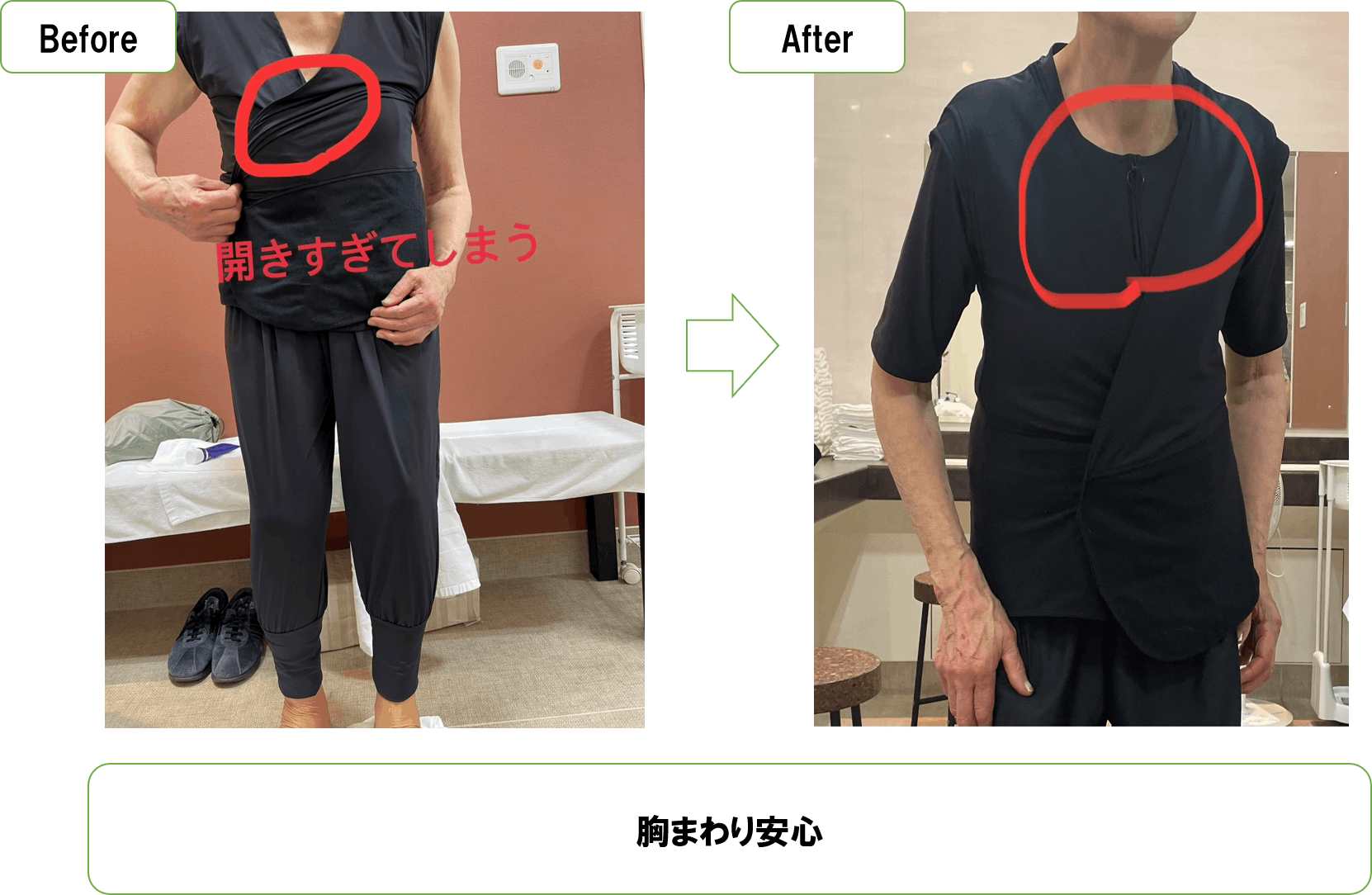 着替え方法は個人差もあり一言で言い表すのは難しいですが、今回は片手で一人で3分以内で着ていただくことができました。