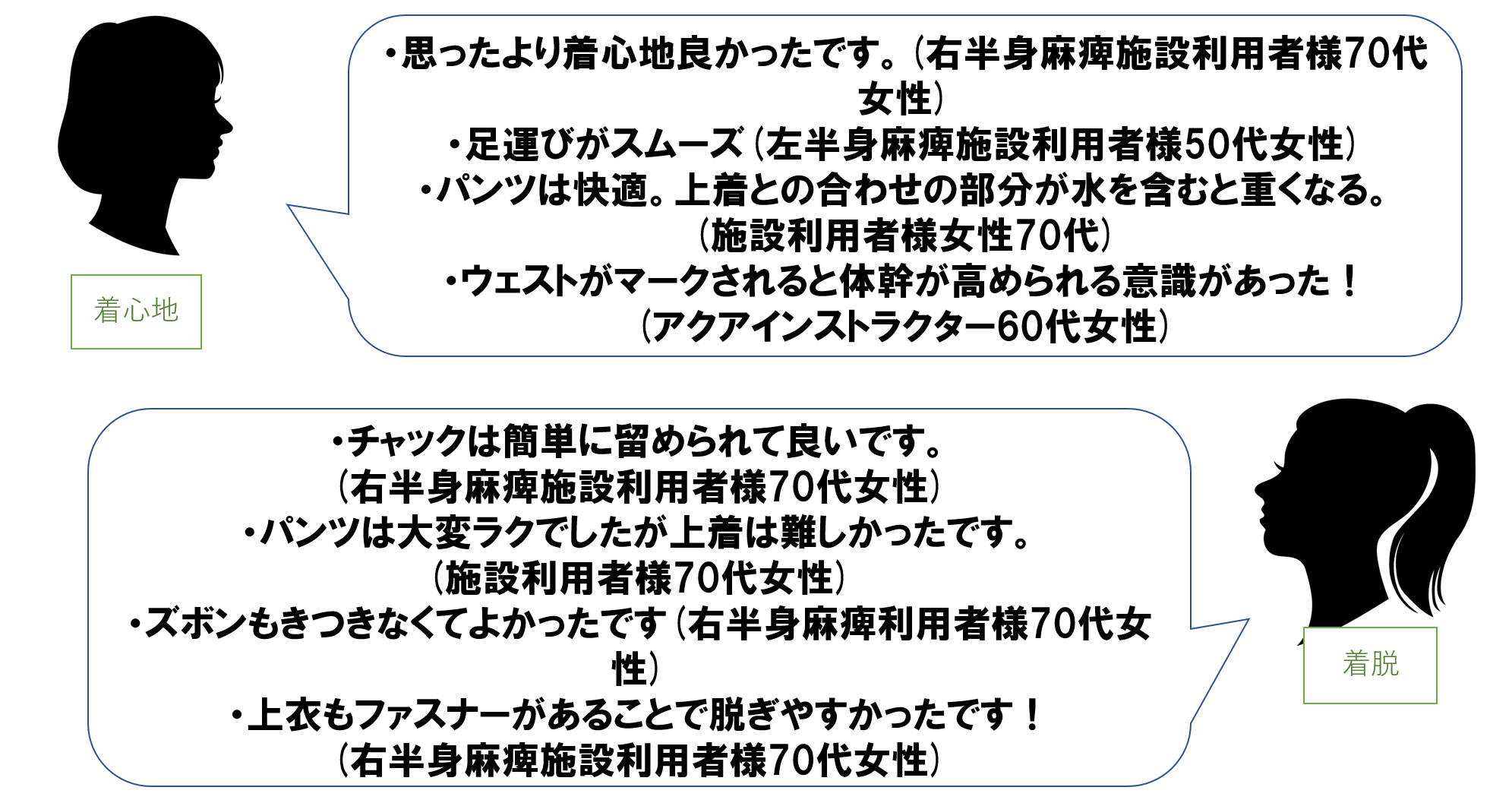 施設利用者様に着用していただき感想をお聞きしています。
