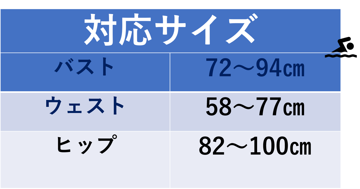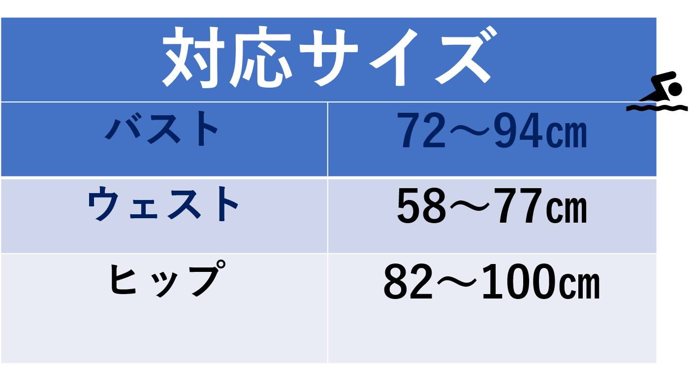 サイズはワンサイズでありますが下記にご説明する通り新発想構造の水着でありますのでS(7号)~L(11号)までご対応できます。手術の影響でお腹がどうしても出てしまう、円背の影響で普段のサイズではキツイ、という場合にも無理なく着ることができオシャレも楽しめます。