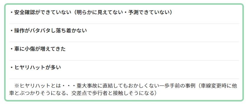 安全確認ができない、咄嗟の判断が遅くなったと感じる場合は運転を控えることが一番。
