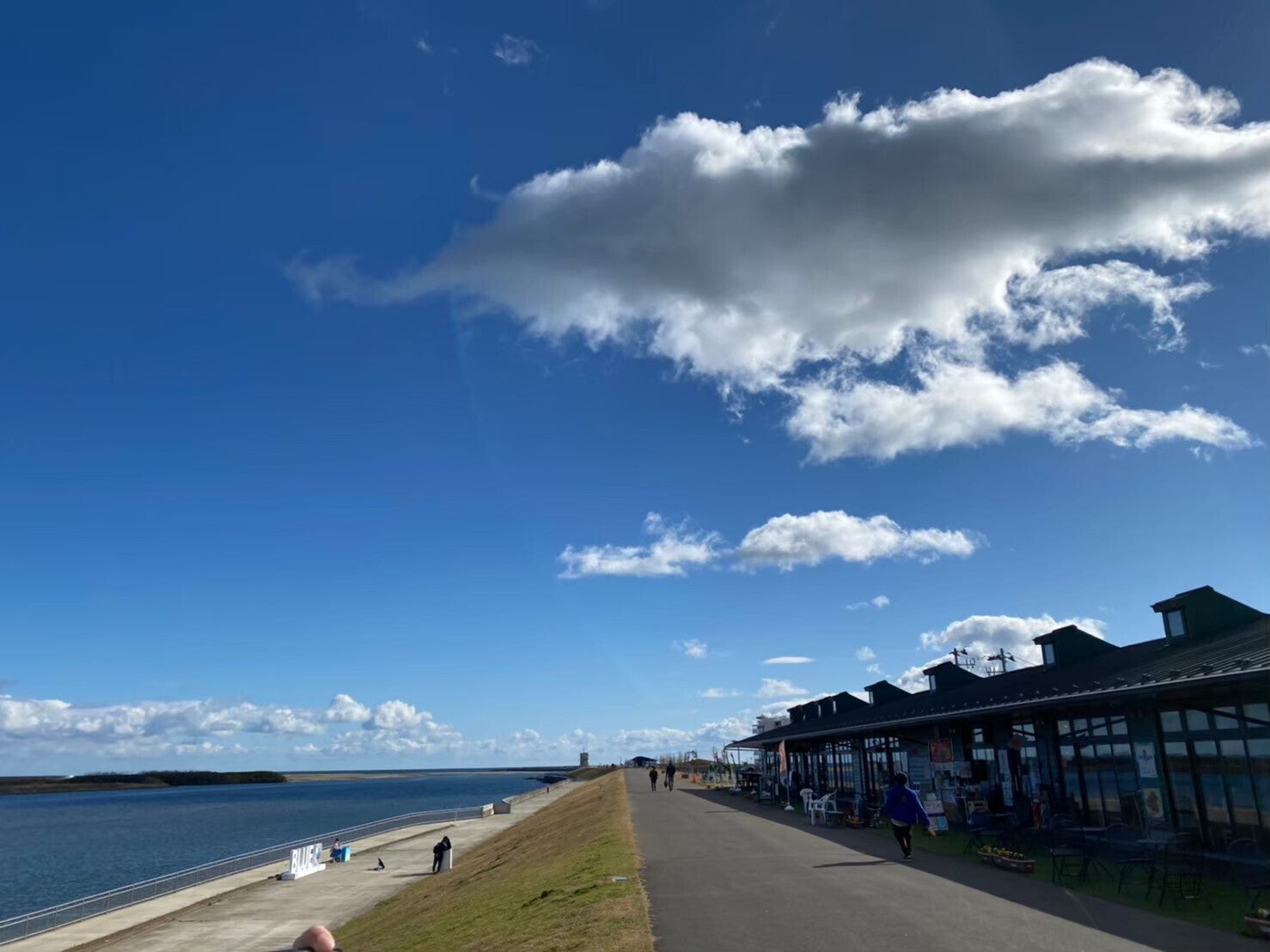 また、生まれ変わった閖上のまちを照らし、川辺の憩いのテラスとなるよう願いが込められた、閖上の新しい商業施設として2019年4月に「かわまちてらす閖上」がグランドオープンしました。木造平屋建ての3棟には飲食店や海産物、スイーツのお店など25店舗が軒を連ねており、名取川沿いのオープンテラスでは、オーシャンビューを楽しみながら水辺の心地よい風の中で食べ歩きができます。
