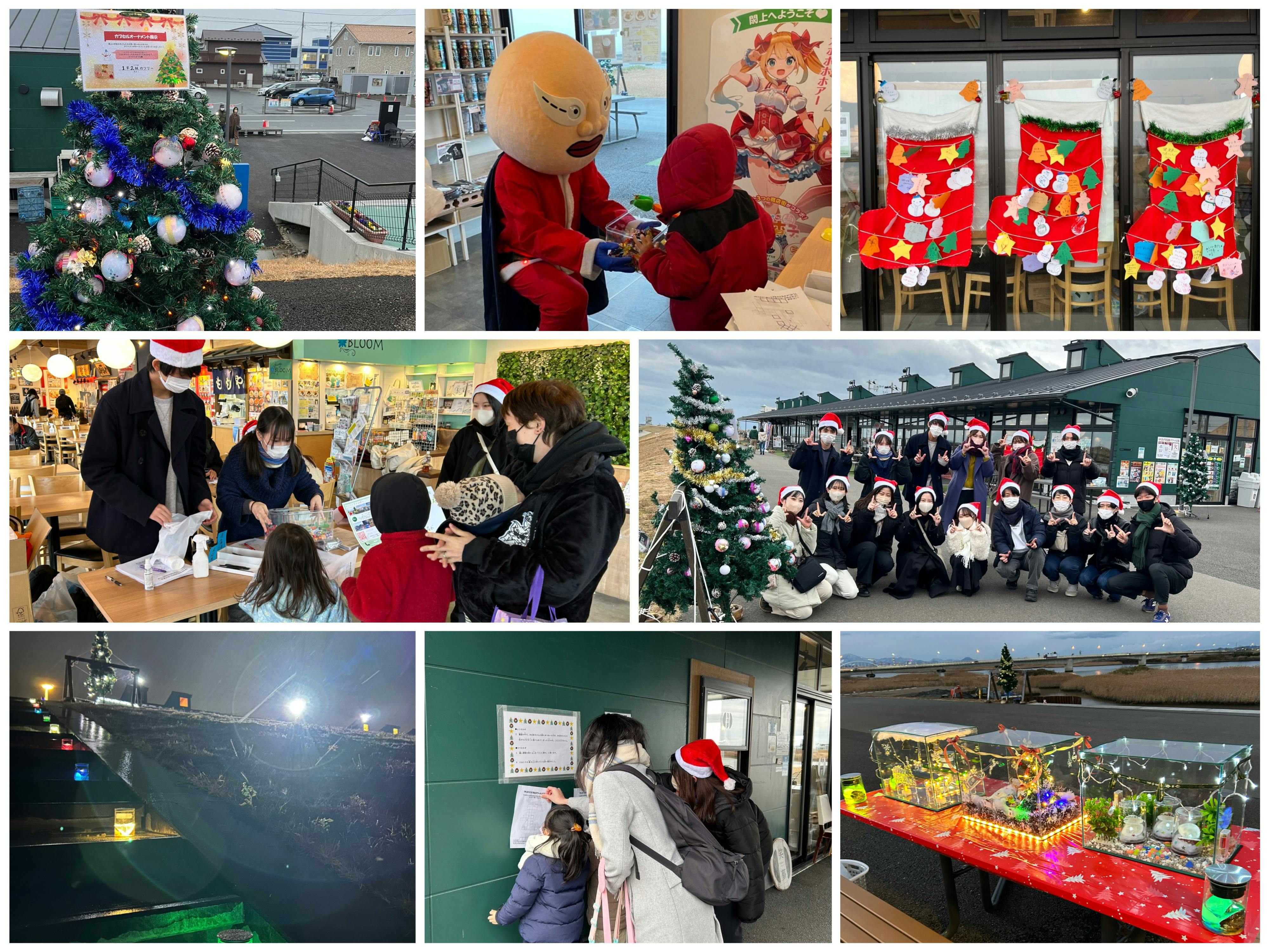 主な企画は、①当日盛り上がるためのステージ企画、②地元の名産赤貝を用いた「赤貝キャンドル」製作、③地元の子どもたちクリスマスツリー企画の三本立てで行いました。