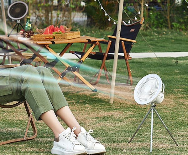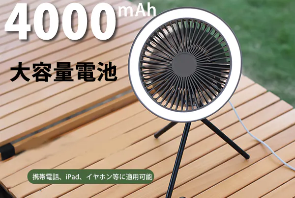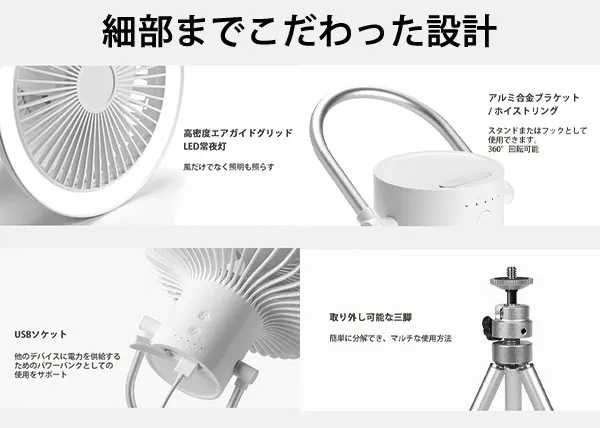 IZELL-F30は屋内外問わずに活躍が期待できるLEDライト付きのコンパクト置き型扇風機です。