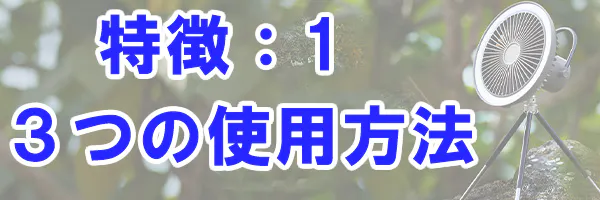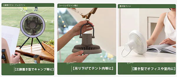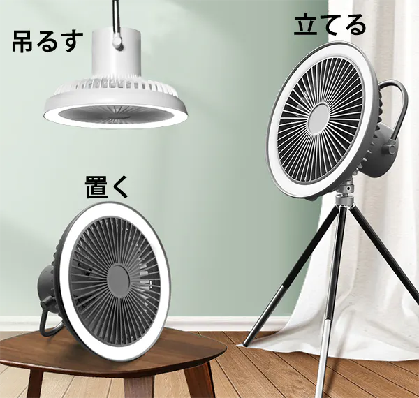 使用方法は大きく分けて「三脚を使用して立てる」「吊るす」「直置きする」の3通りです。