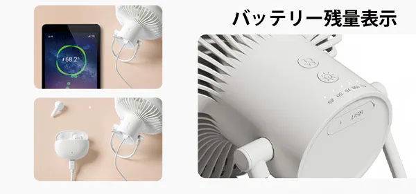 本体に「25%・50%・75%・100%」のバッテリ残量表示が付いているので急な充電切れを防いでくれます。