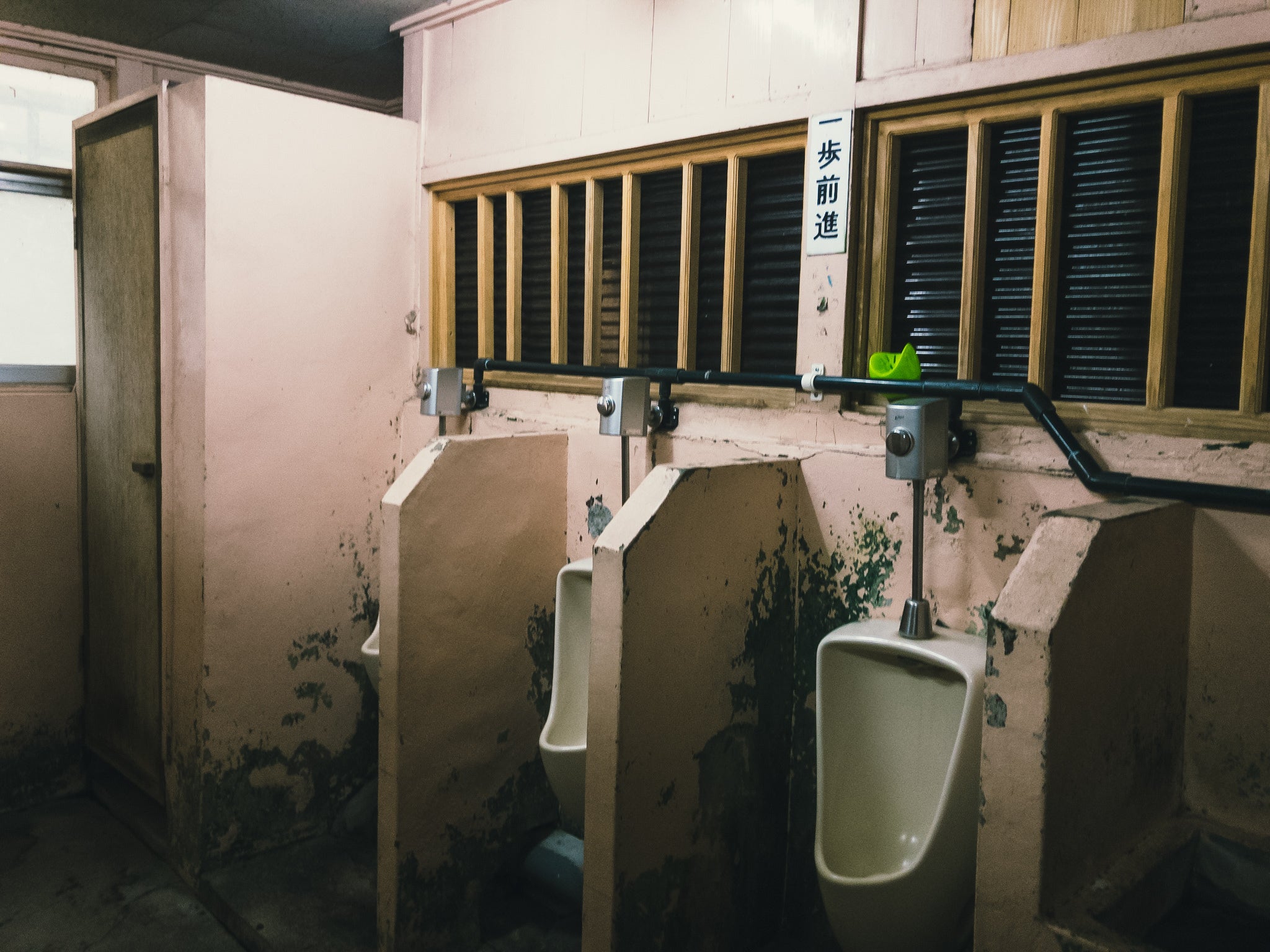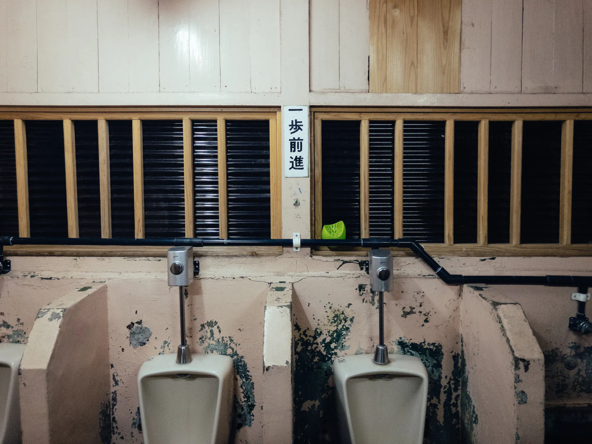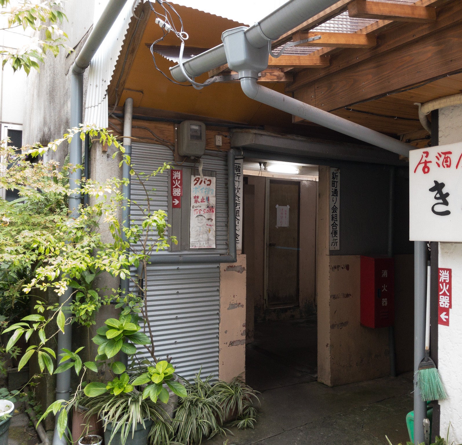 “名山堀で飲むと必ず利用するのが、新町の共同便所。そこで小用を足すと目の前にある小窓から横の建物の壁が見える。そこにはよく大きな銀たらいがかかっていた。それを見つめると子どもの頃見たドリフ劇を思い出す。用を足し終わるまでのわずかな時間、ちょっとだけ気持ちが40年くらい前に戻ることができる。わずかだけど、共同便所はそのような時間も提供してくれる、僕にとってニクい存在でもある”