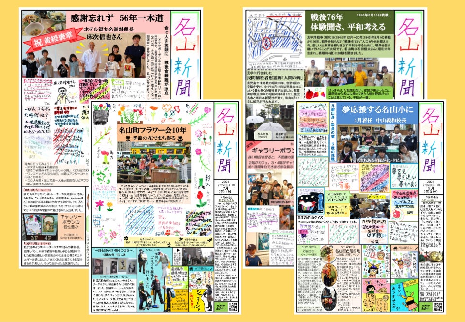 地域の子どもたちが記者となって名山の店や出来事を取材し、毎月発行する「名山新聞」は、地域の人々に親しまれるだけでなく、ローカルメディアのコンテストの読者投票で全国5位になりました。