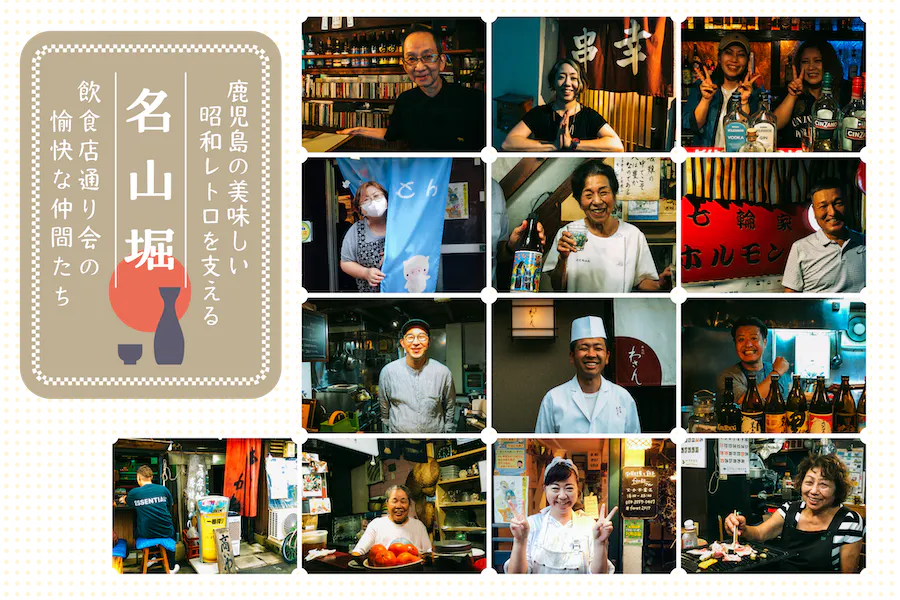 私たちは、鹿児島市名山町の昭和レトロな飲み屋街「名山堀」(めいざんぼり)の新町飲食店通り会の13軒で構成しています。