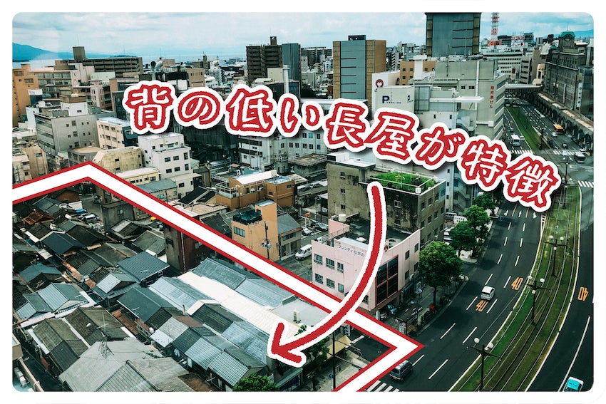 鹿児島市のど真ん中に、背の低い木造長屋が並ぶ風景は独特です