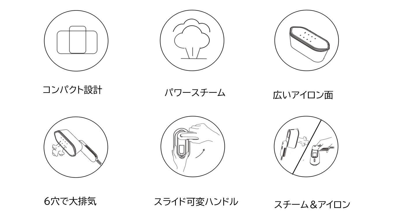 miniスチームアイロンでは上記のようなお悩みを6つの特徴で解決してくれます!