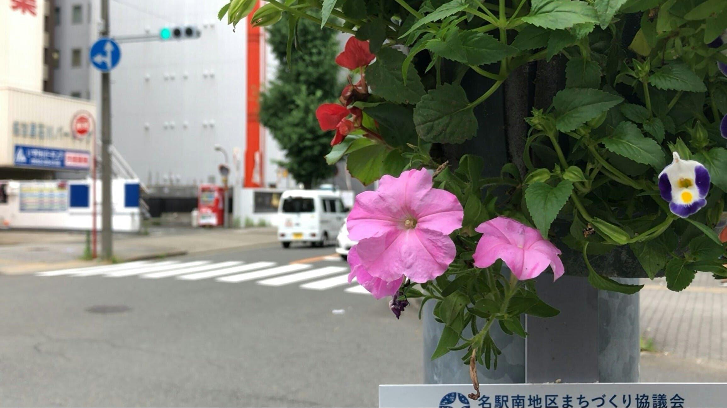 たとえば、協議会の会員のみなさんと、まちの魅力探しをするワークショップを行ったり、まちなかの清掃活動やビルが立ち並ぶまちなみに彩りを加えようと、「ハンギングバスケット」による植栽の設置なども行っています。
