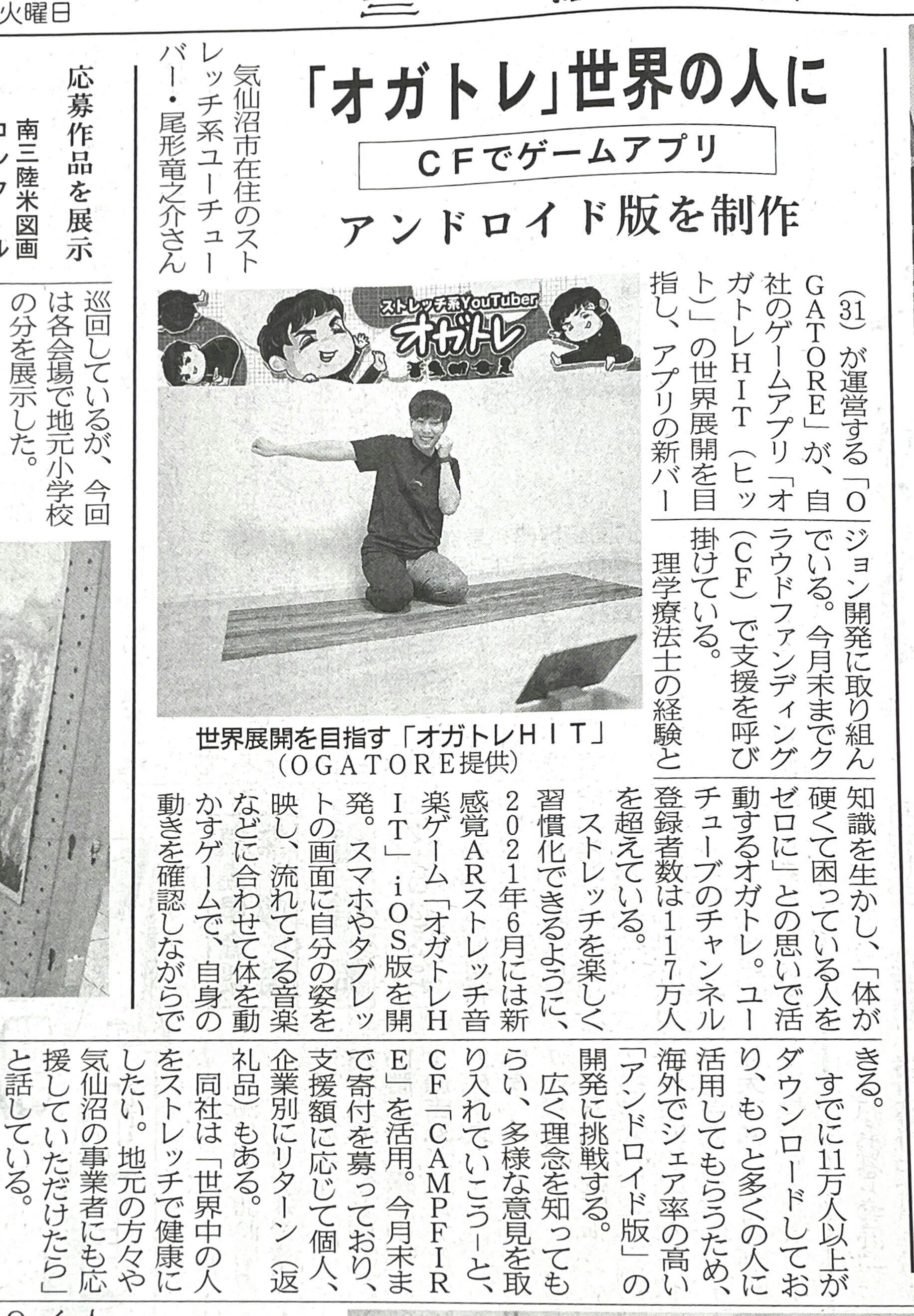 追伸:宮城県の新聞「三陸新報」にも取り上げていただきました。