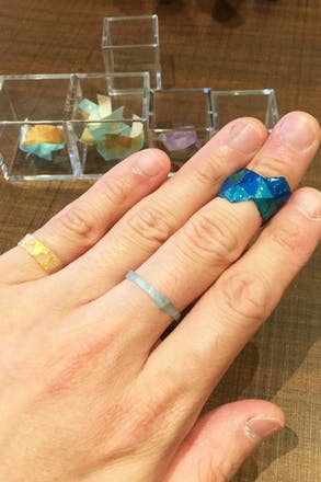この指輪はつけ始めると体温によって接着力が増します。そのおかげで、付ける指を変えて第一関節と第二関節の間につけてみたり色々な装飾を楽しむことができます。