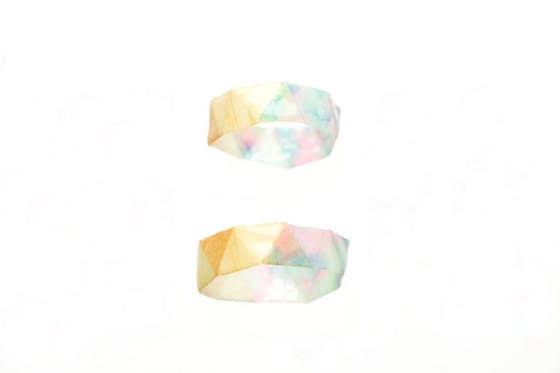 この偶然の色合いと選んでいただいた色、そして指のサイズによって決まる指輪の形によって、あなただけ唯一無二の作品が完成します。