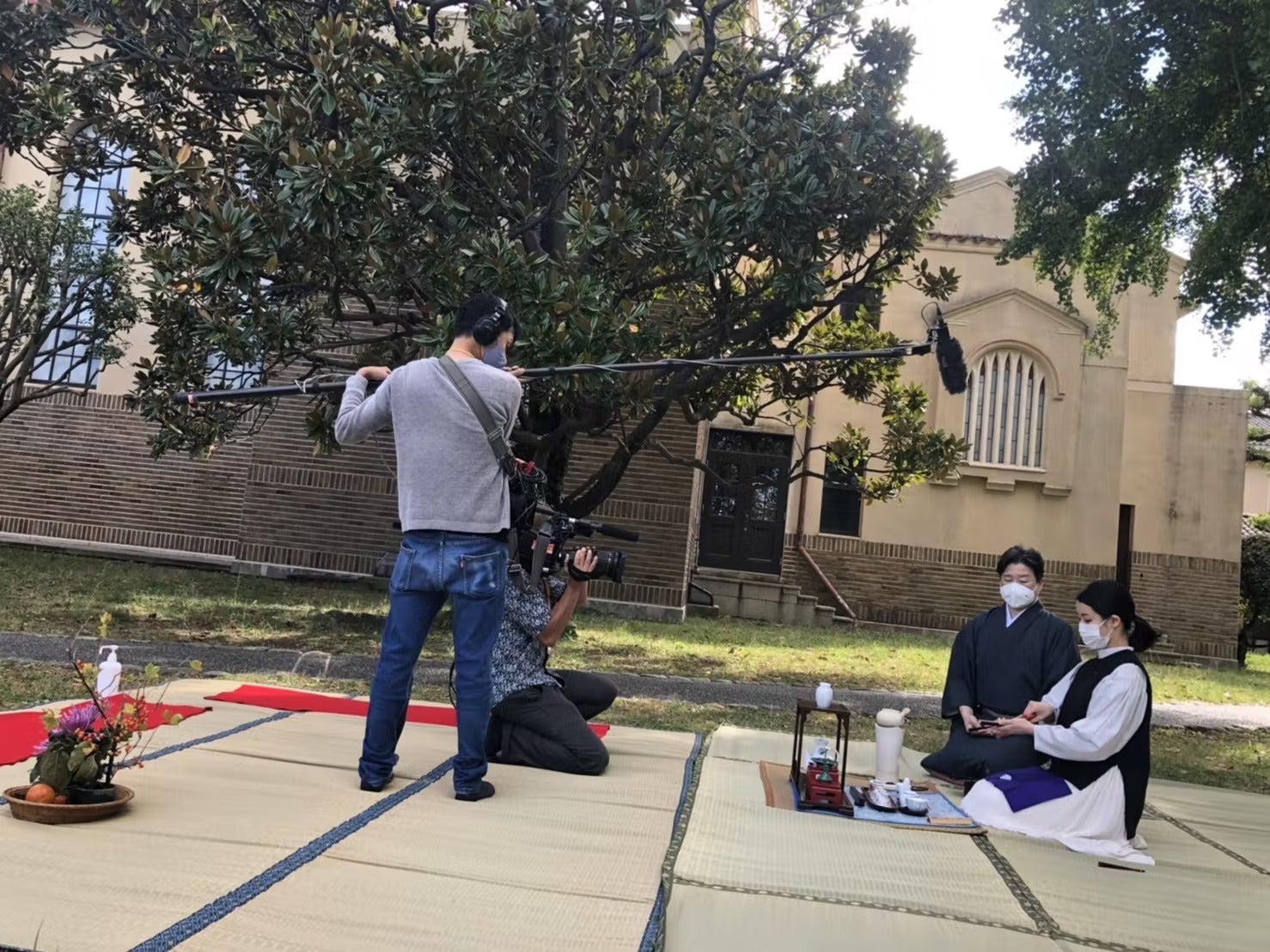 2021.11/21 観楓煎茶会開催(ABC TV取材)コロナ禍でも煎茶会を心のよりどころに励む生徒2人に注目しABCのキャストで放映されました。