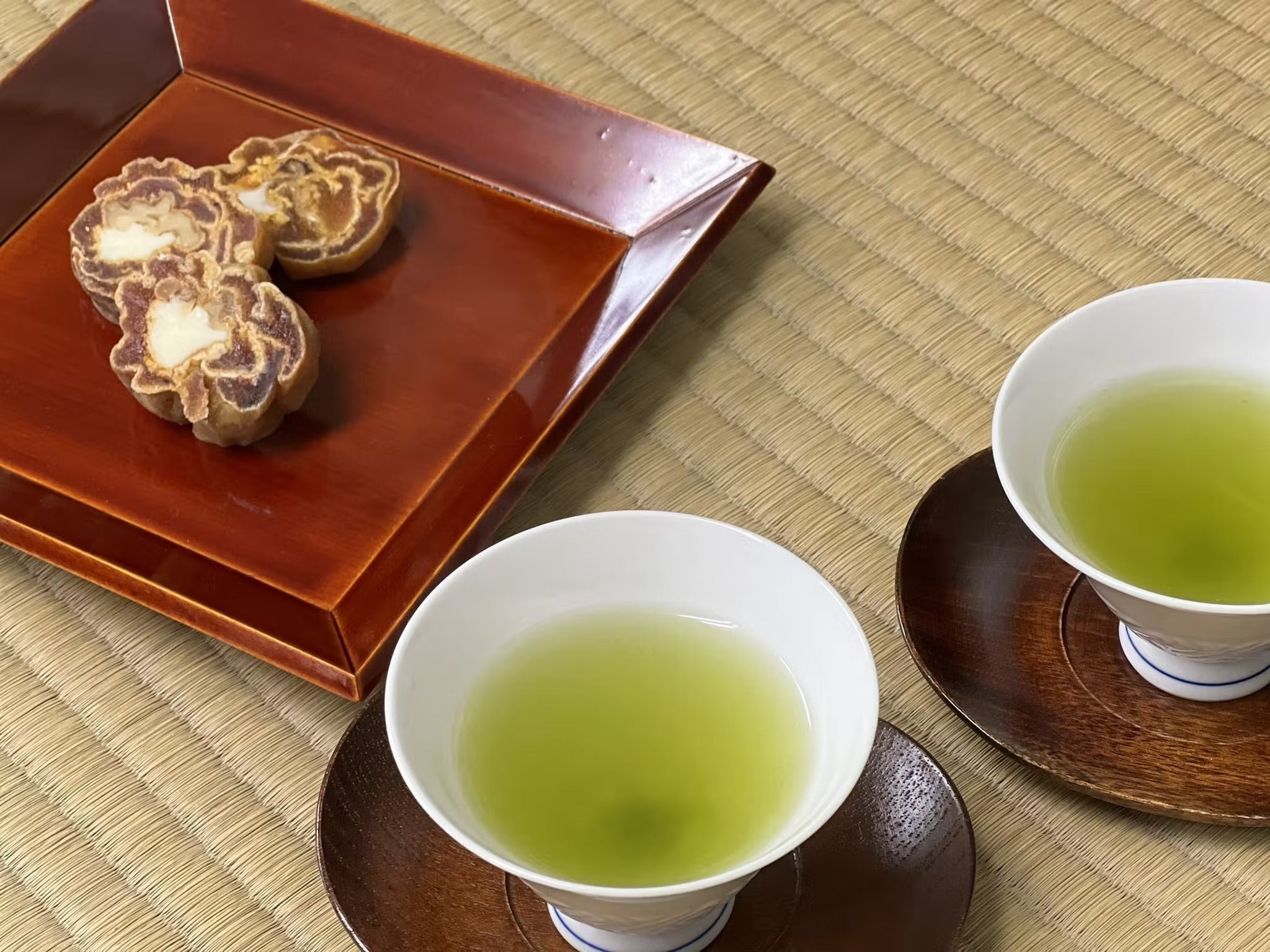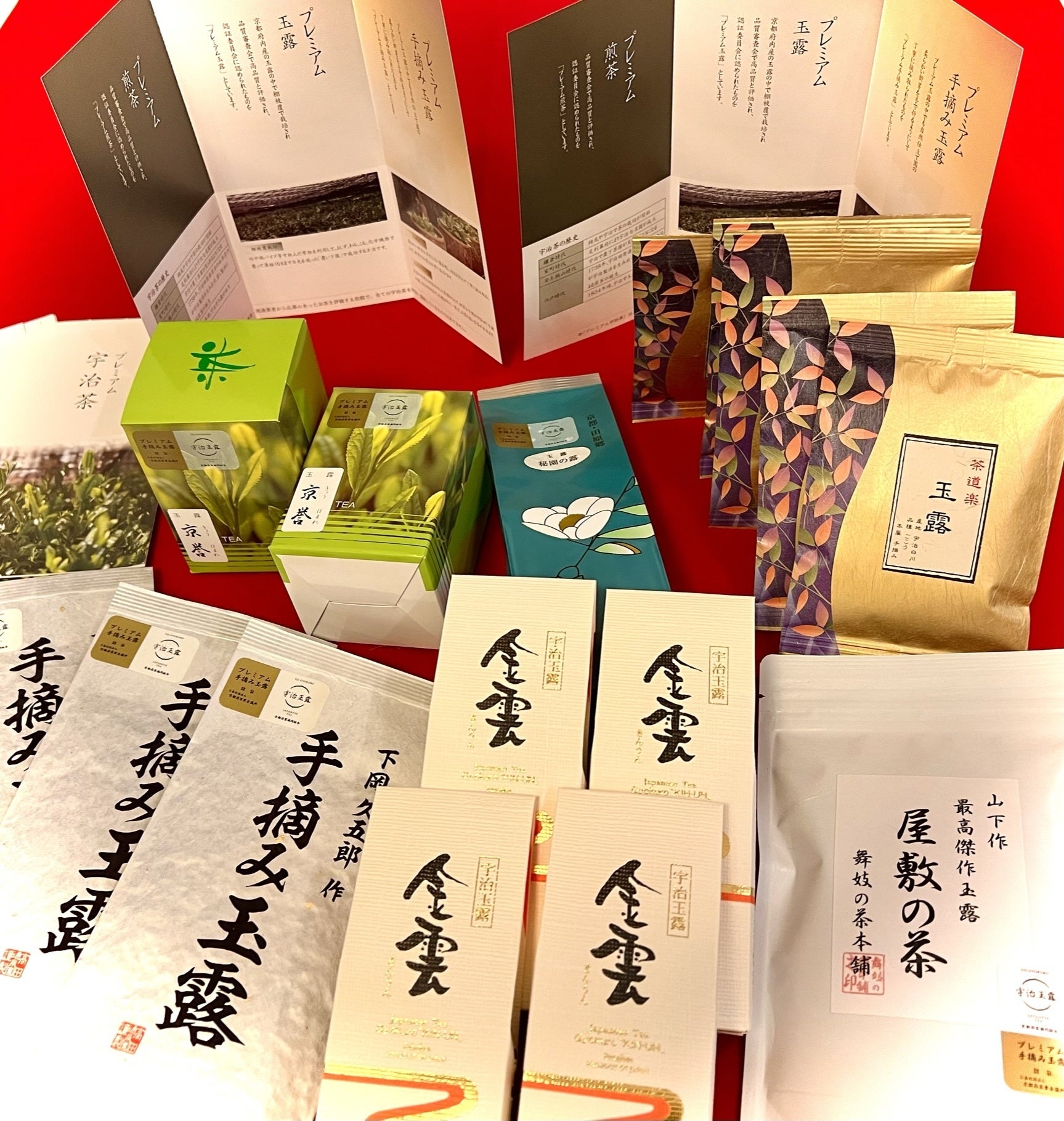 茶葉は一席ごとに異なる宇治茶の品質審査会で高品質と評価され、認証委員会に認められたプレミアム手摘み玉露・プレミアム玉露を各種用意しており、和菓子も1年前から手掛けたスペシャルな和菓子を準備いたします。