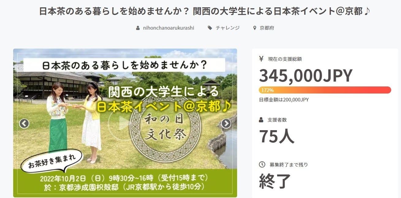 そして5月31日にクラウドファンディングを行い、当初の目標金額を達成することができました!