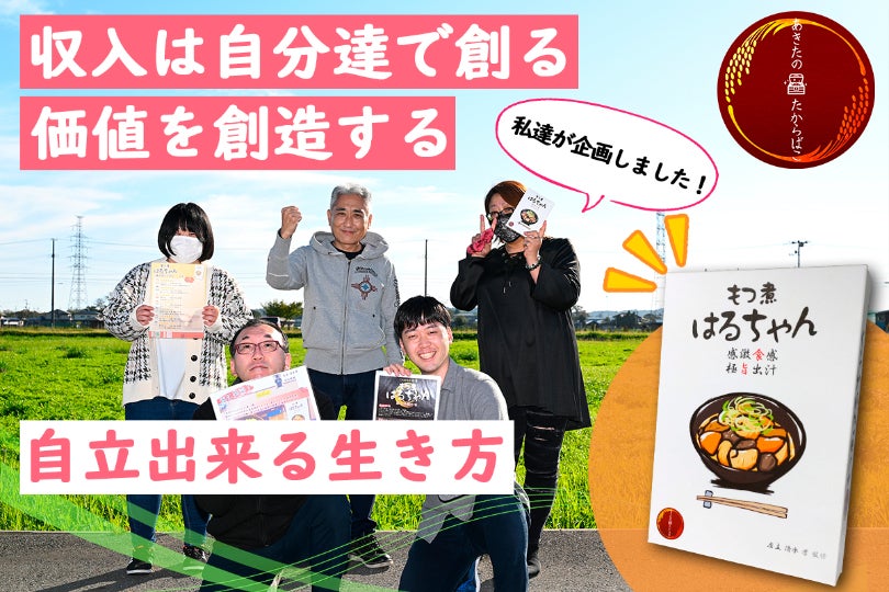 自分達で仕事を創り積極的に発信し所得向上目指します。地元秋田の資源を活かした商品の企画製造販売を行います。「あきたのたからばこ」と言う名のショッピングサイトを立ち上げます。