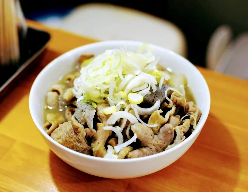 昼前に完売する程もつ煮はるちゃんの人気の理由は秋田県産に拘った食材と一つ一つ手作業でモツの脂分を取り除いて比内地鶏をじっくり炊いた出汁に甘めの秋田味噌を併せたスープは冷めても固まる事無くサラサラでまさに淡麗の一言です。