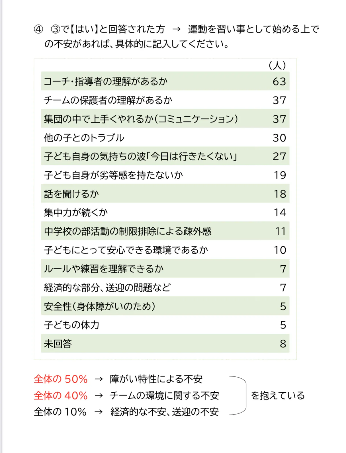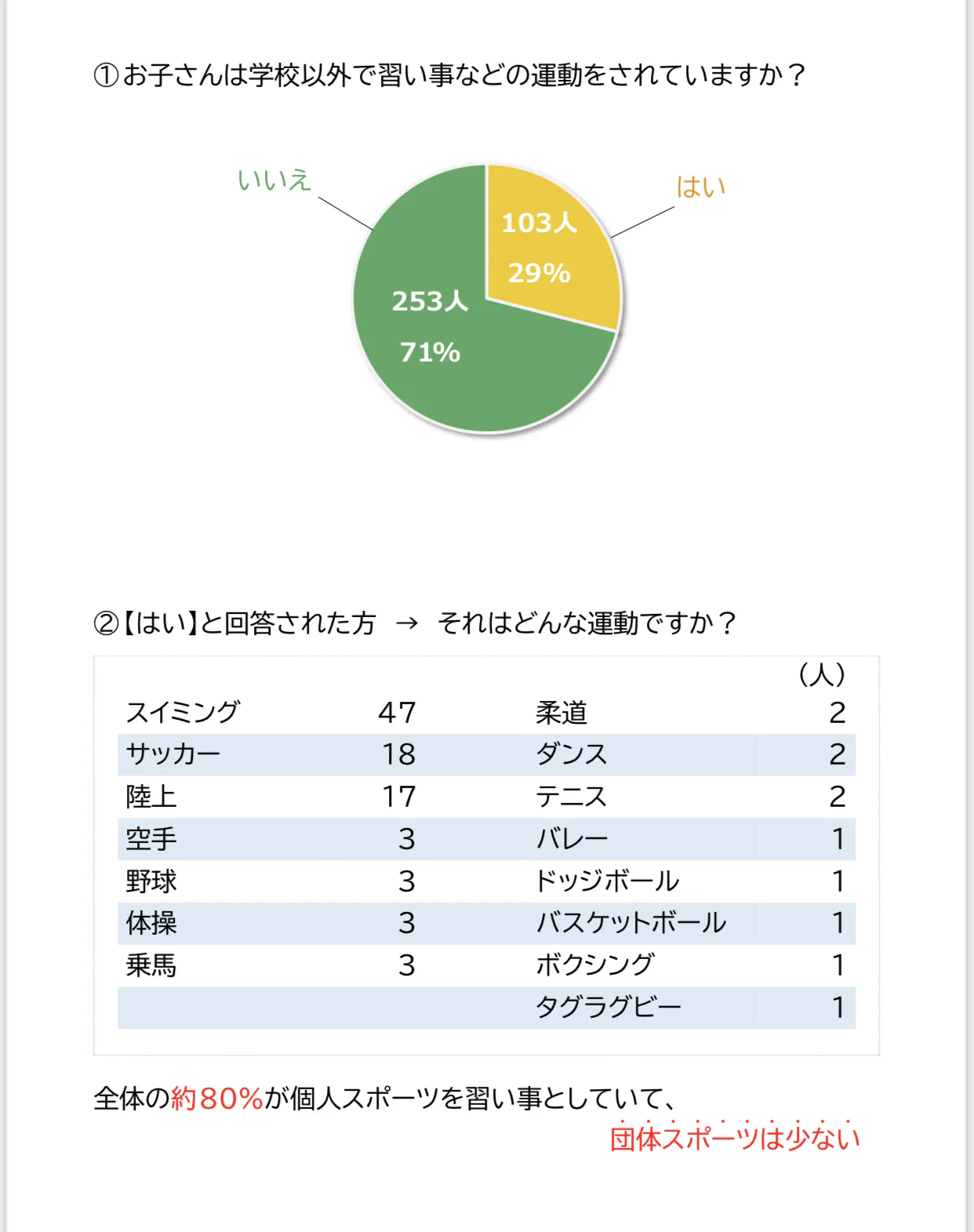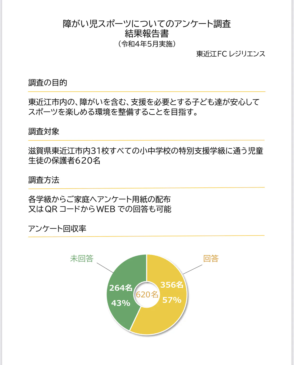 ↓東近江市内の小中学校の支援学級に通う児童生徒の保護者さんを対象とした、スポーツに関するアンケート調査を行いました。