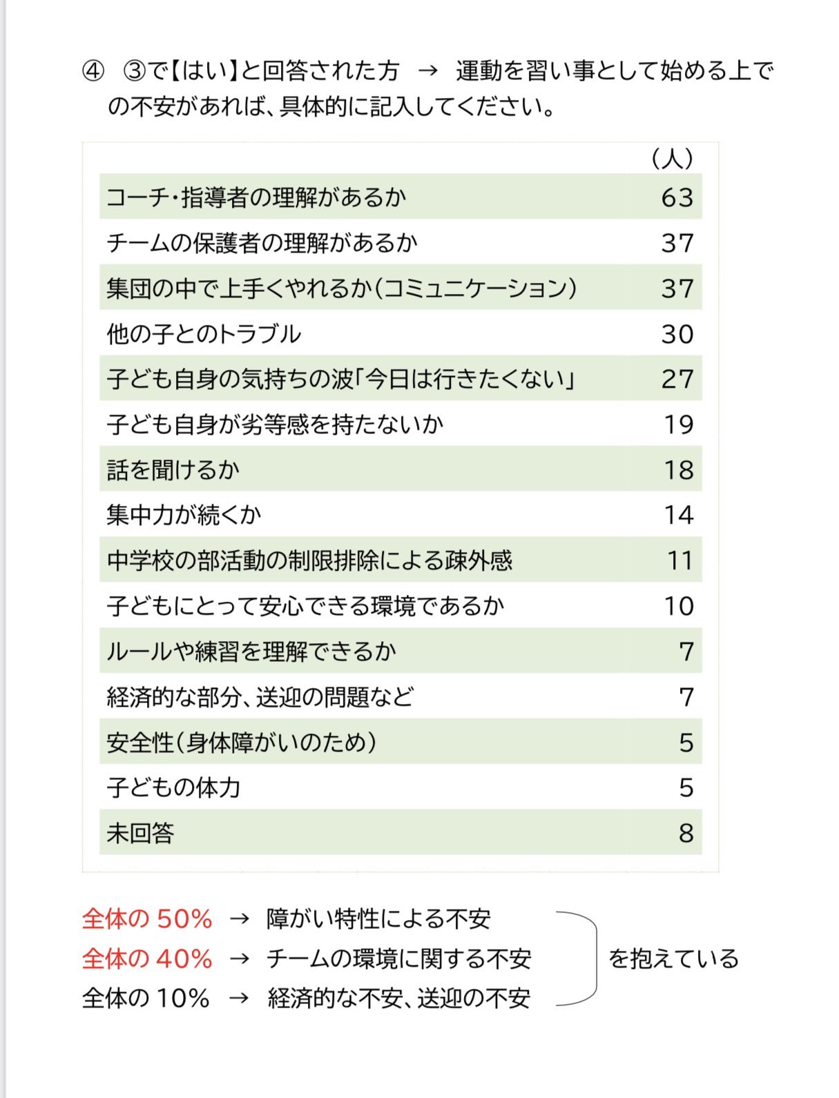 ↓東近江市内の小中学校の支援学級に通う児童生徒の保護者さんを対象とした、スポーツに関するアンケート調査を行いました。