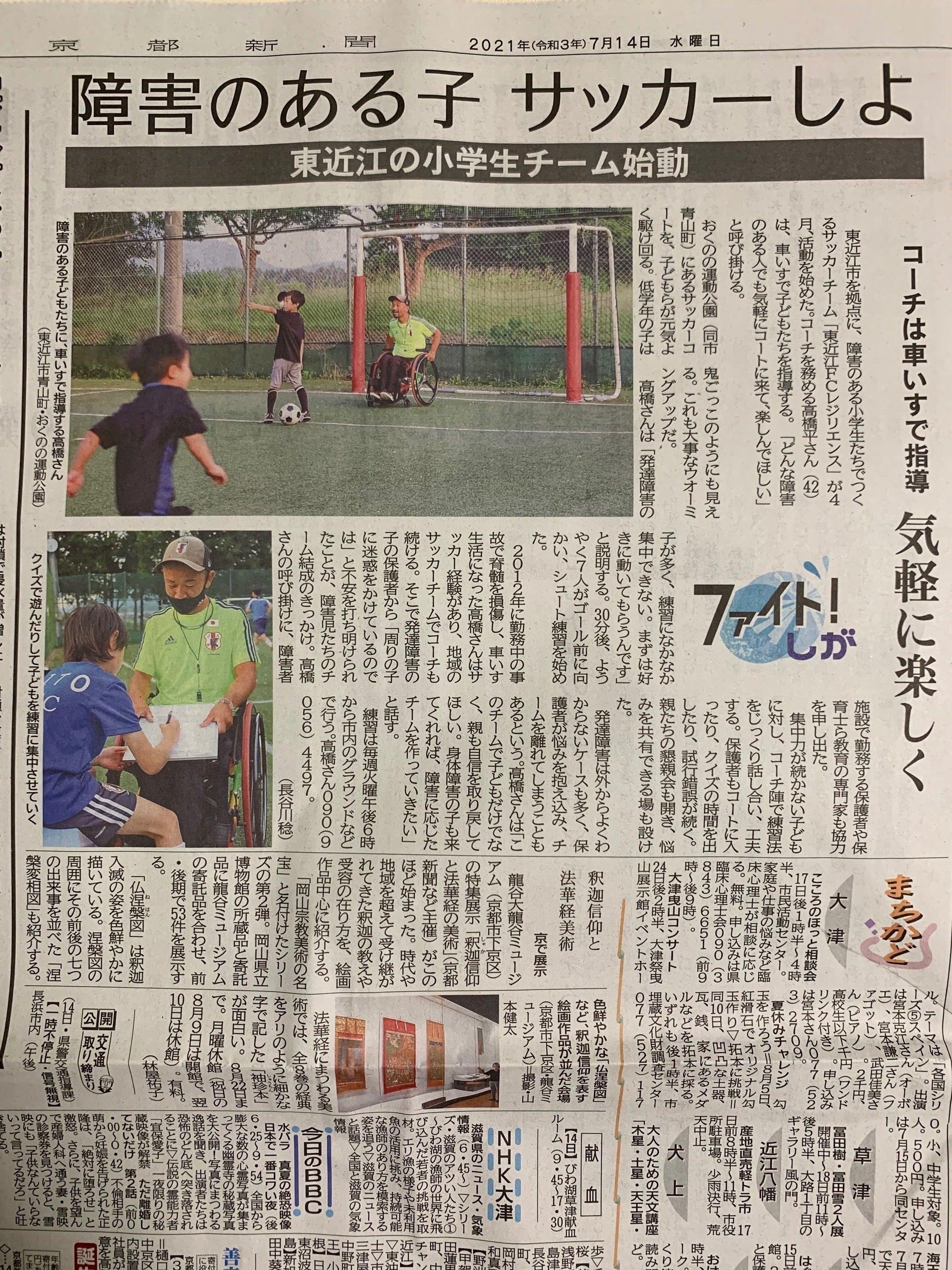 現在は、滋賀県東近江市でサッカーチームの代表として活動させてもらっています。