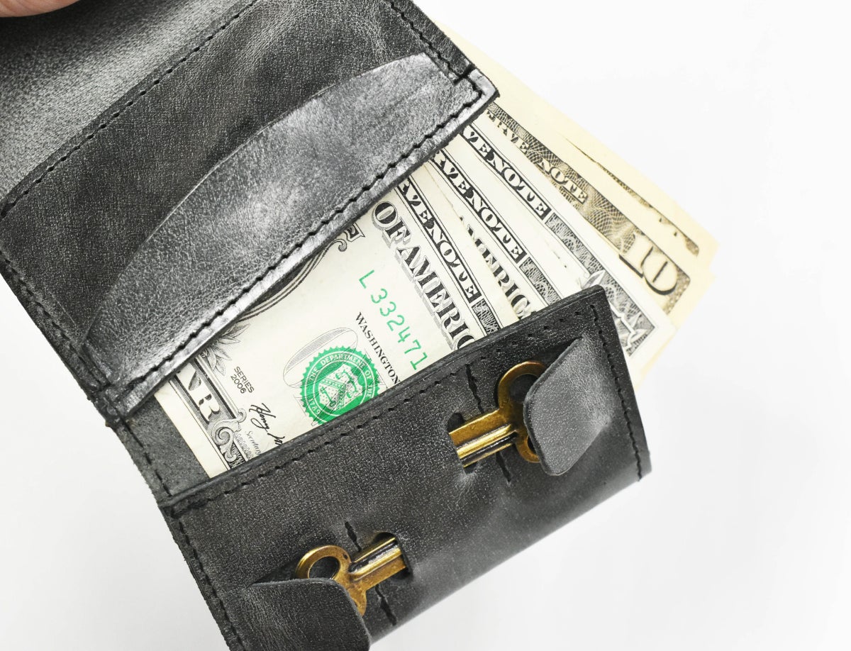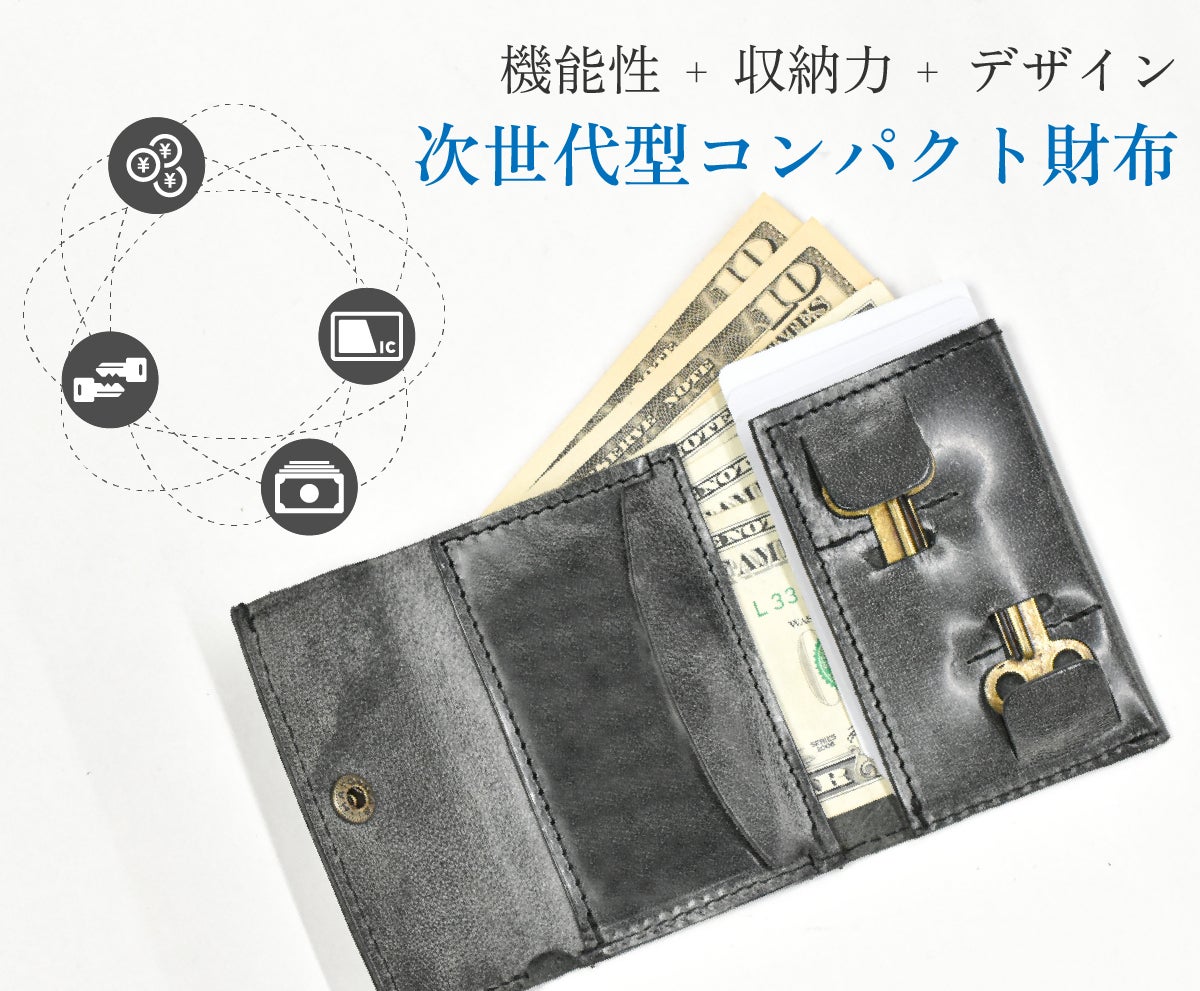 金具を無くし、厚み約1cmの薄さを実現した小銭入れ