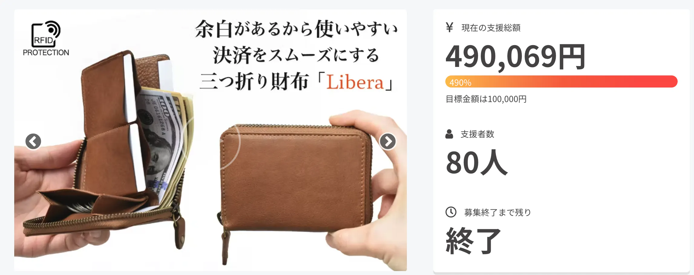 2022/10/18 09:28最小最薄よりも、開放的な使い心地を。余白のある三つ折り財布「Libera」たくさんのご支援をいただき、無事にプロジェクトを終える事が出来ました。今回も多くの方に共感いただき、成功まで導いていただきました。支援額は40万円を超え、達成率は490%、80名のご支援をいただく事が出来ました。日々新しいプロダクトが発表される中、当プロジェクトへ期待を持ってご支援いただいたものと、スタッフ一同感謝の気持ちで一杯です。誠にありがとうございます。【配送について】Liberaは11月発送を予定しています。詳細な日程が分かりましたら、活動報告にてお知らせいたします。※応援購入の際にご登録いただいた発送先住所に変更のある方は【10/21(金)】までにご変更をお願いします。ご登録の住所へ発送させて頂きます。Hallelujah inc. もっと見る