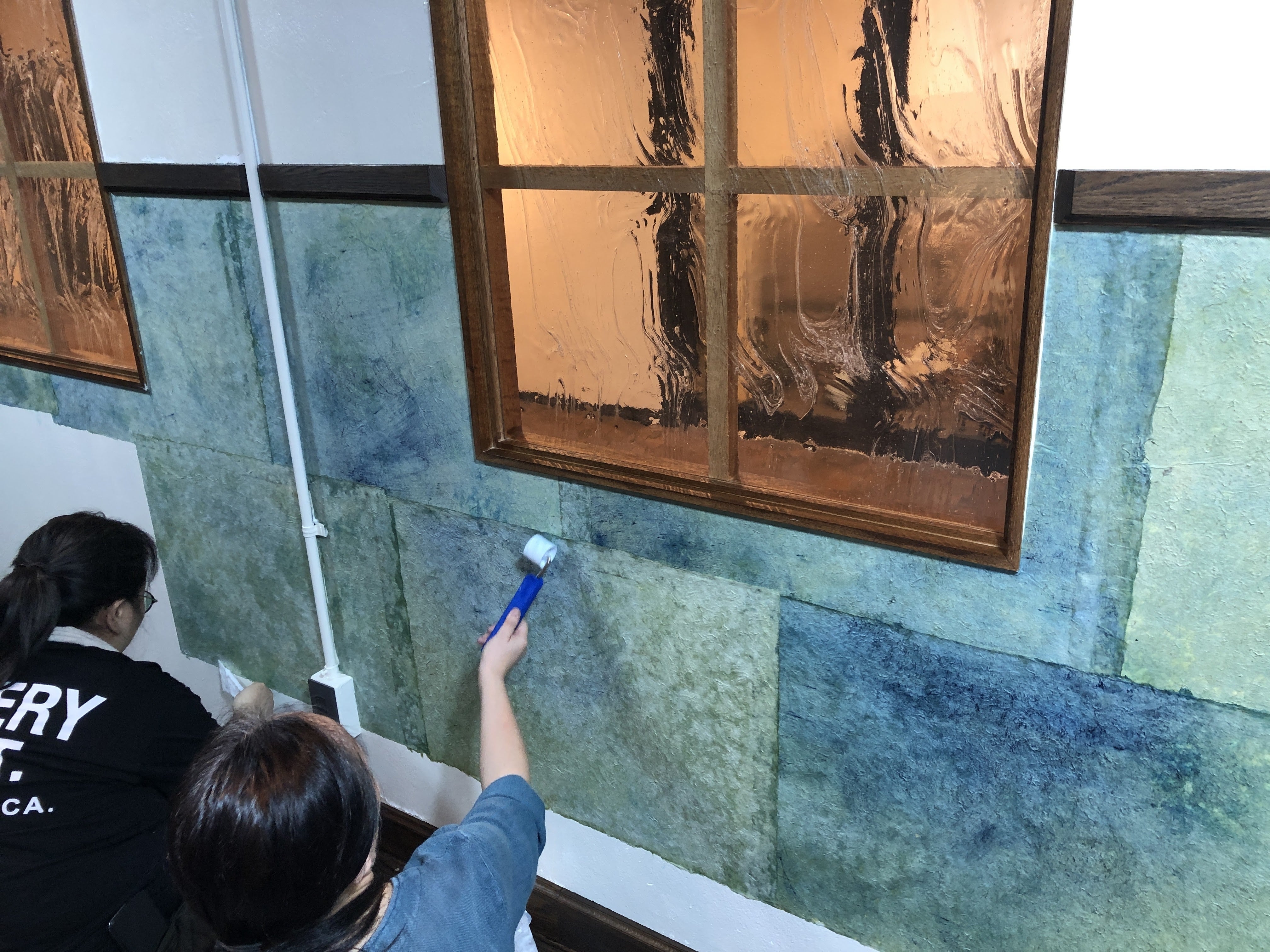 MAMEHICO神戸・御影、実はそのお隣にガラス張りの小さなスペースがありまして、今まではずっとビニール張りで工事中だったのですが、10/27に、MAMEHICO MINI としてお披露目いたしました!MAMEHICO MINI の壁には、和紙を貼ったのですが、MAMEHICO神戸・御影と同様に、お客さんの手を借りて、行いました。今回は高校生の女の子までお手伝いしてくれて、まさに老若男女の手で完成です!もはやおなじみの作業となった和紙張り。細かなパーツにもきちんと和紙を貼っていきます。10/27〜10/30までは、結城美栄子展 を行いました。美術館が出現!MAMEHICO神戸・御影のすぐそば。日中に写真を撮ると反射しがちで難しいのですが、全体像はこんな感じです。これなんだろう??目をひくスペースです。11月からは、また新たな企画展や、MAMEHICOの物販を充実させていきますよ〜!これからは、MINIもどうぞよろしくお願いします!
