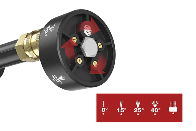 25°の角度で水の噴射範囲が広がる。