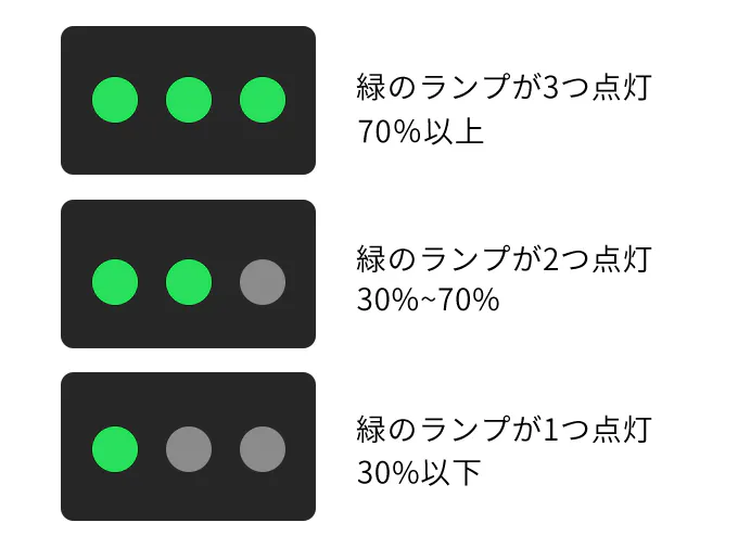 電源残量は3段階で表示されていますので、バッテリー残量が一目でわかります。