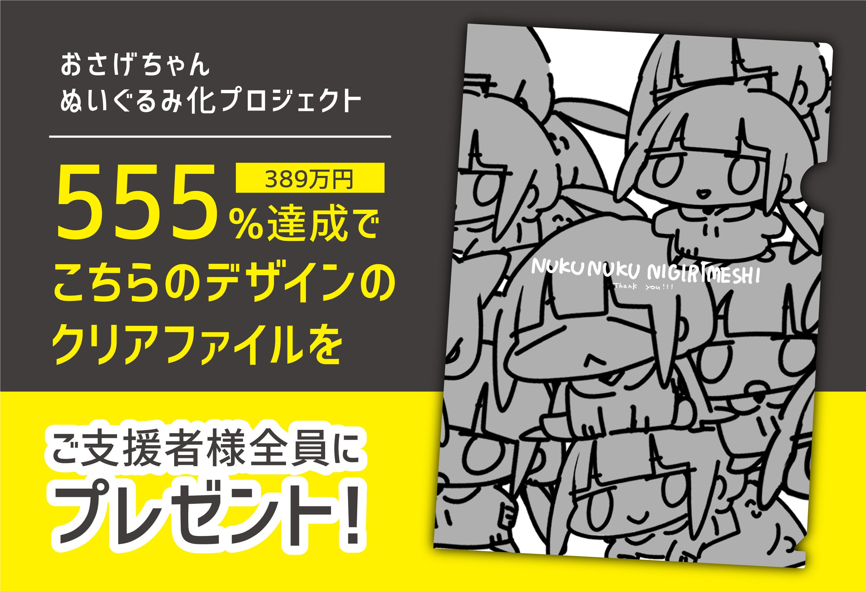 555%達成で、ご支援者様全員に「限定クリアファイル」をプレゼント!