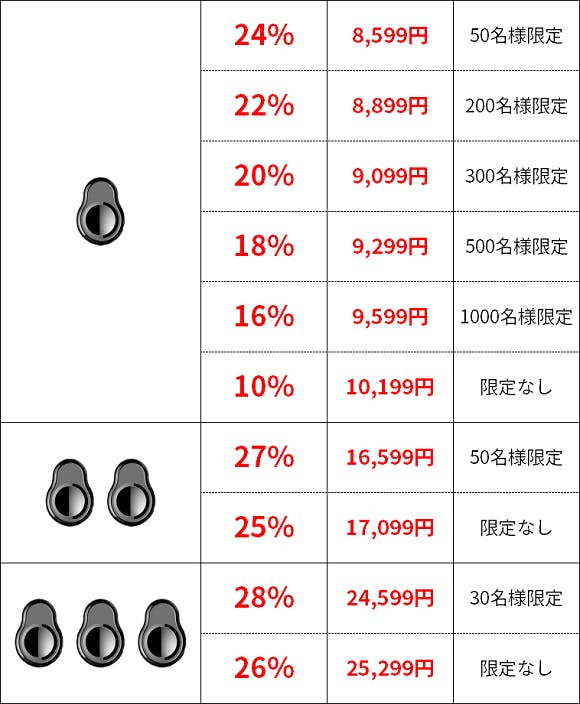 ※本プロジェクトを通して想定を上回る皆様からご支援を頂き、現在進めている環境から量産体制を更に整えることができた場合、正規販売価格が販売予定価格より下がる可能性もございます。