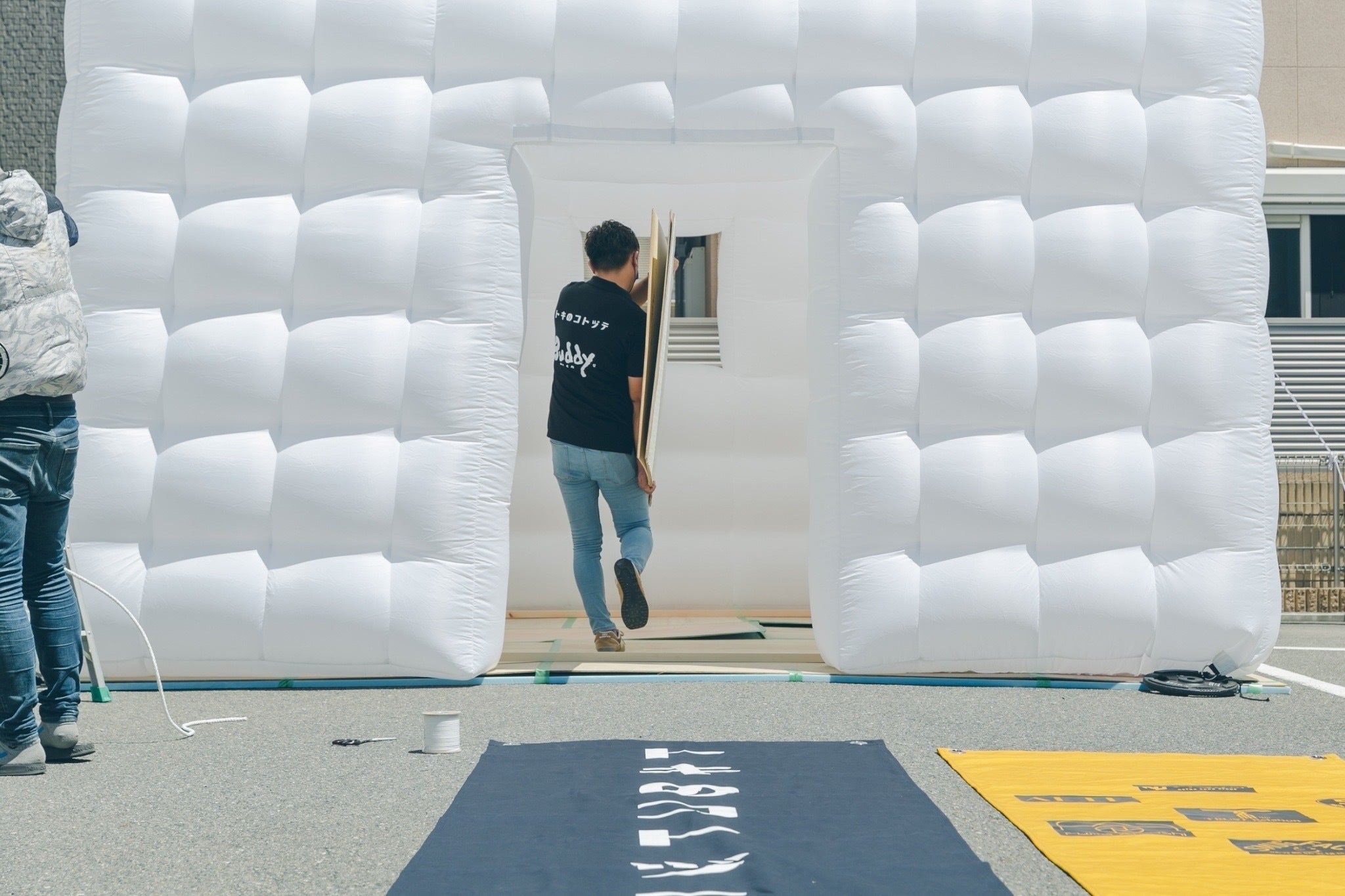 この「トキのコトヅテ」は、キューブテントを使って高齢者施設や障がい者施設、学校などの屋外に昭和時代の部屋をつくるプロジェクト。