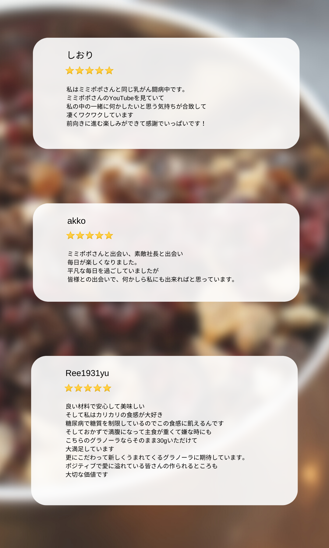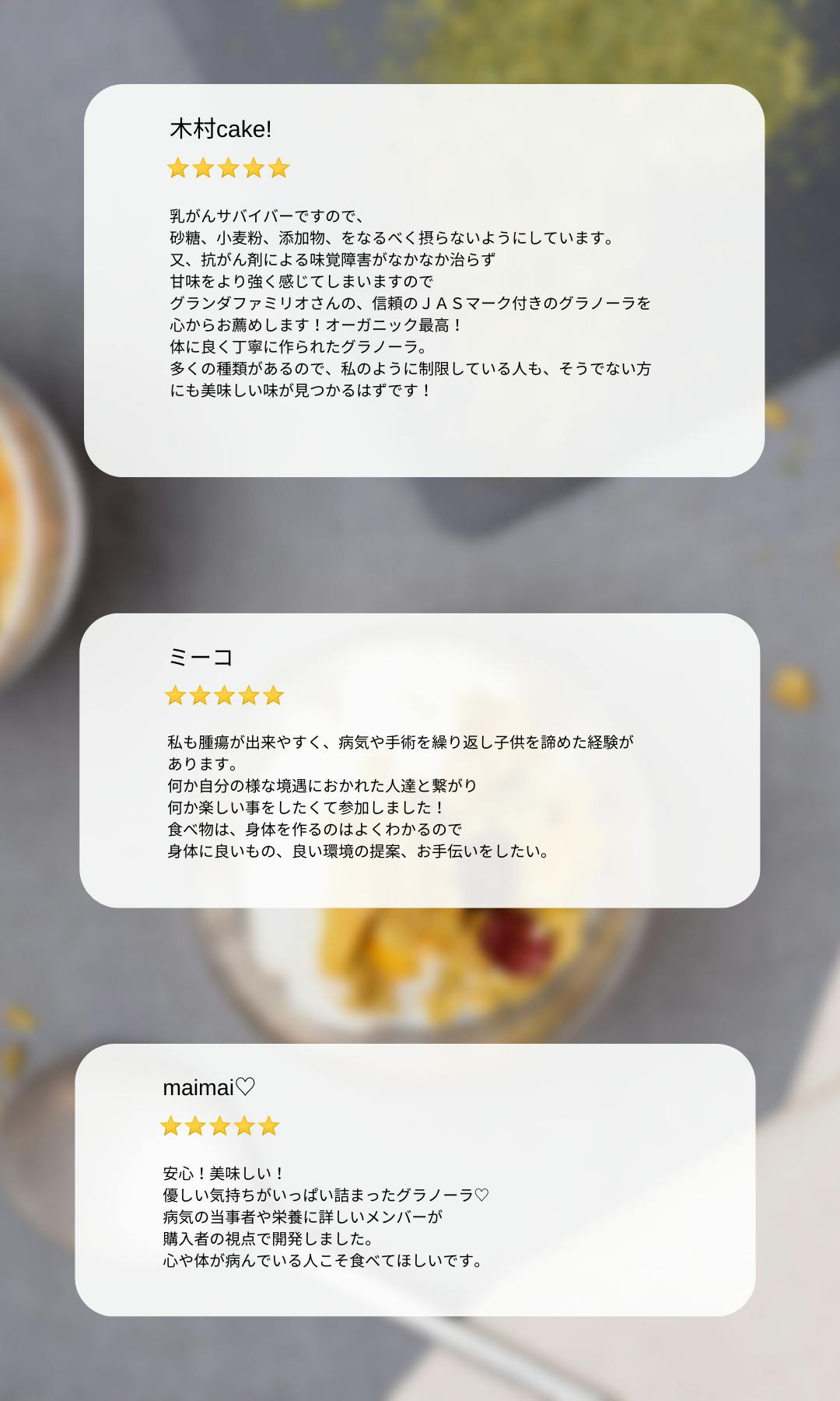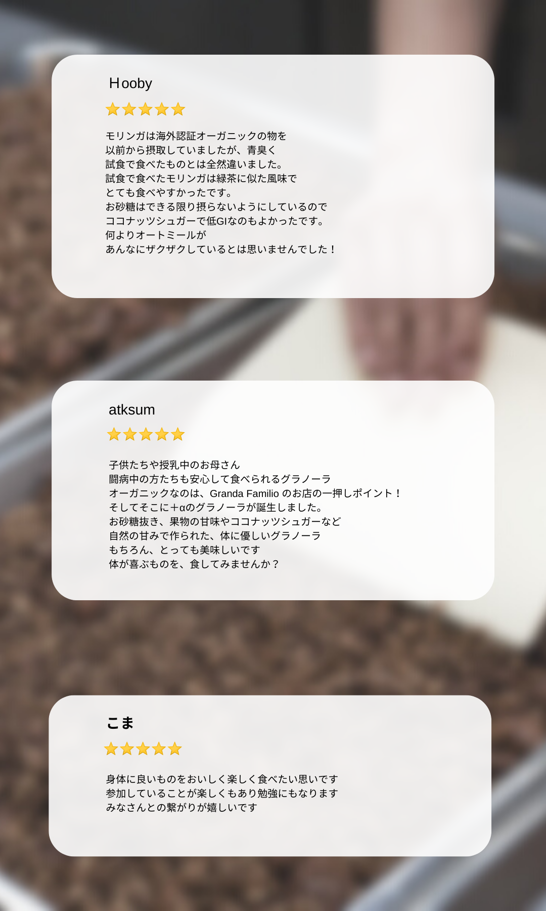 こだわりすぎたグラノーラ3種を皆さまに食べて頂きたくてはじめました。
