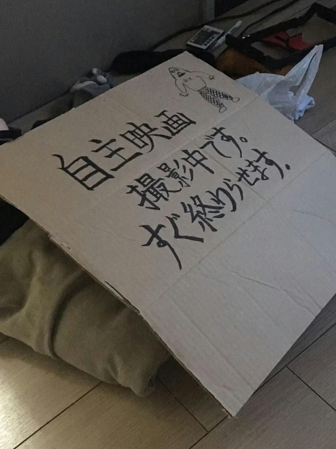 (iPhoneだけで撮った初監督作Opus posthumous撮影時に使っていた看板)