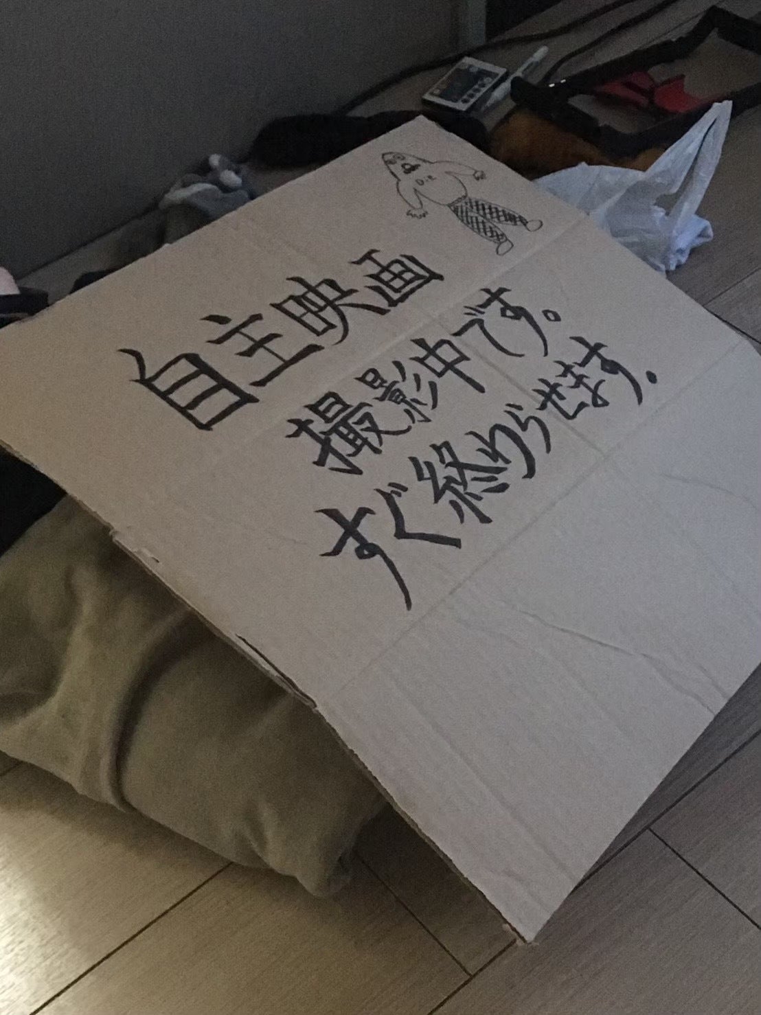 (iPhoneだけで撮った初監督作Opus posthumous撮影時に使っていた看板)