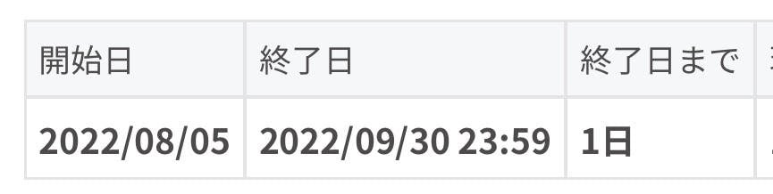 終了日まで後1日!を