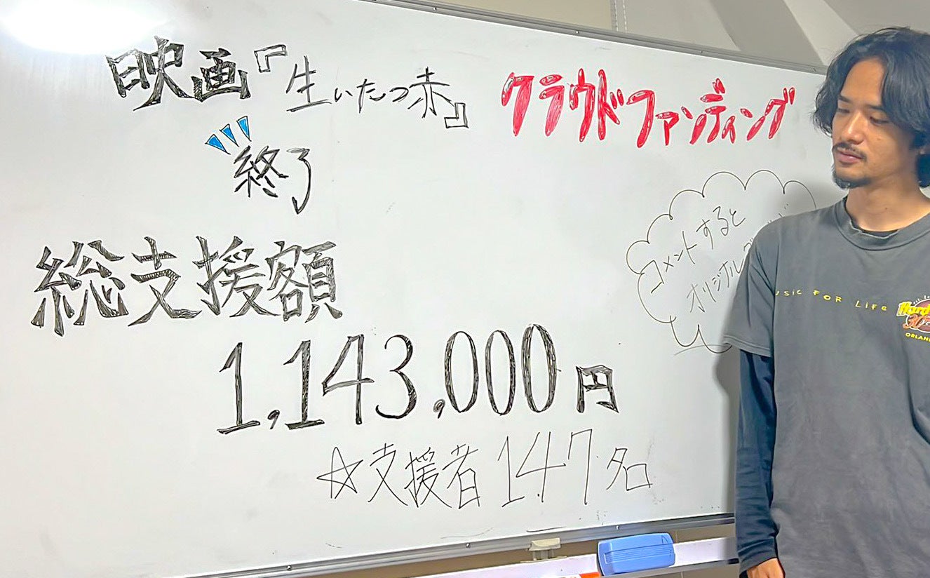 撮影を挟んだ為、ご報告が遅くなりましたが、映画「生いたつ赤」クラウドファンディングは支援者数147名、総支援額1,143,000円で達成となりました!たくさんのご支援、応援、拡散を頂きました。お1人でも欠けていればこのような結果は得られませんでした。加えてこの結果は僕1人の成果ではございません。皆々様の応援とご支援のパワーが導いてくれた到達地点であります。皆々様への感謝と僕達や「生いたつ赤」には力強い数多くの仲間がいることへの自信を抱き、残すところ1日となりました10月30日の撮影にも挑みます。今後に関しましては映画の完成と、皆様への返礼品、関係者試写会。更には映画祭の先。東京、愛知県、京都、熊本の劇場での上映を目指します。一区切りとはなりましたが、「生いたつ赤」を今後ともよろしくお願い申し上げます。宮原悠