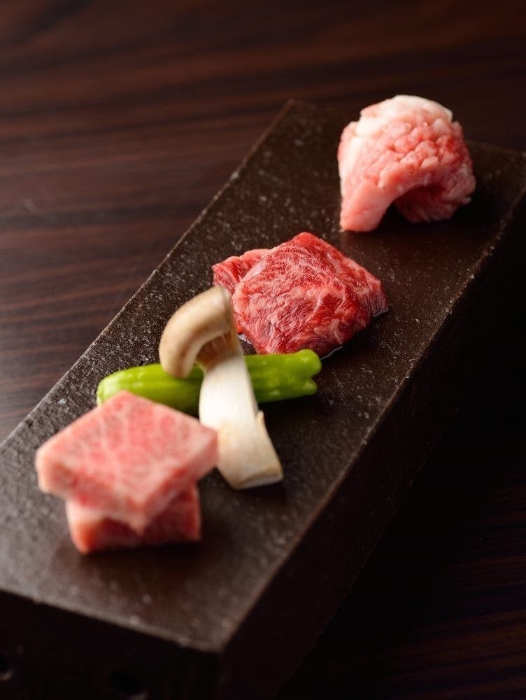 今回使用されるお肉は通常お目にかかれない希少部位からスタンダードな部位まで和牛一頭を味わい尽くして頂きます。