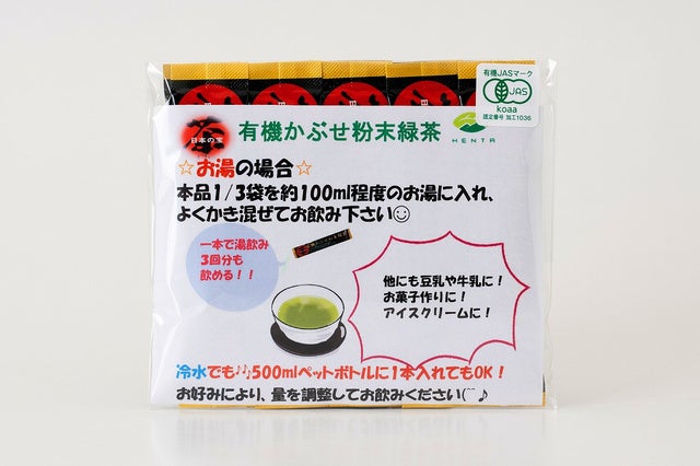 ▲ヘンタ製茶特製「有機かぶせ粉末緑茶 10本」