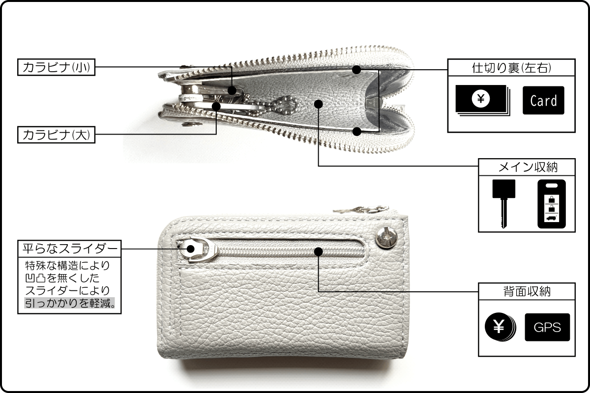 鍵やスマートキー、免許証などの貴重品を収納する場合、よくあるボタンタイプのキーケースでは「中身が落下してしまうのではないか?」という不安を感じたことがある方も多いのではないでしょうか?