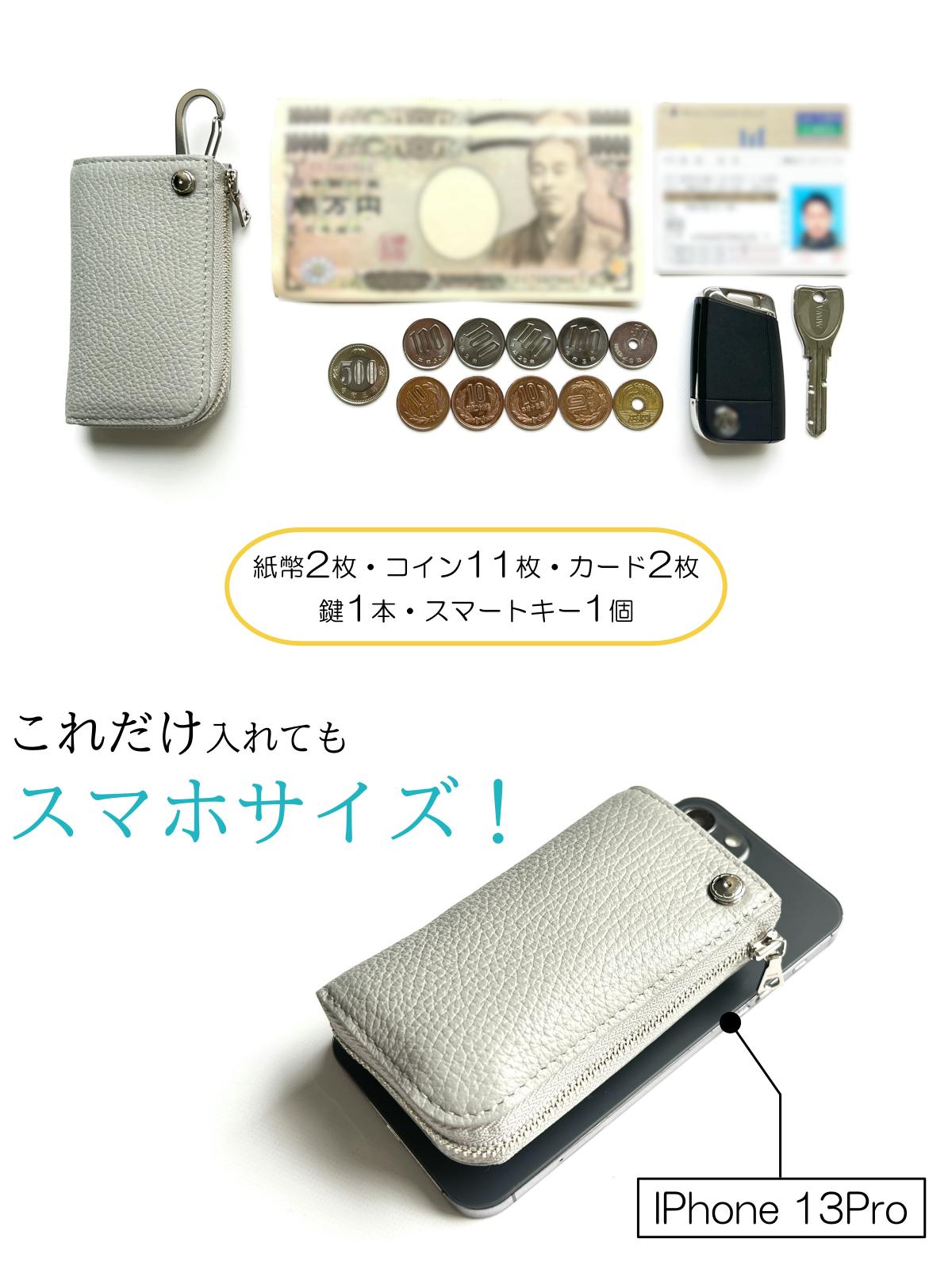 最大の特徴は様々な用途に対応できる汎用性です。使う方に合わせ、ミニ財布・キーケース・スマートキーケースとしてご利用いただけます。