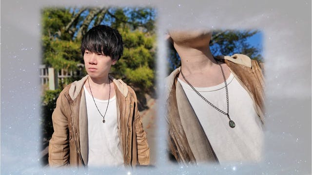 そして、ラブラドライトのペンダントヘッドに合わせているチェーンの形状や質感、カラーリングのバランスにもかなり心血を注いでいます(チェーンの材質は真鍮にメッキは日本でおこなわれた高品質なもののみを使用しています)。