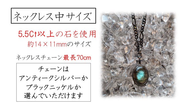 あまり一般的ではない『ラブラドライト』という石をペンダントヘッドのメインにセットしたネックレスです。
