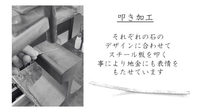 例えばテーブルなんかで綺麗に研磨した木材にペイント&コーティングを施工してピカピカで形もモダンなデザイン&風合いに仕上げられているものがあるとします。それはとても素晴らしいデザインです。貴金属もピカピカの鏡面仕上げで磨かれ作られたものも同じく素晴らしいです。私自身も随分そのようなアクセサリーを製作してきました。けれど、何かもっと素材の持つ質感。そのままの無垢の良さ。。テーブルだと「まるで木の質感をそのまま感じるようなもの」を金属で表現したくなりました。そうする事で天然石と非常に馴染んだり、独特な風合いを具現化する事が出来ました!