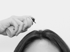 ②毛髪に静電気を発生させるため、ケラチン繊維をスプレーする前に髪の毛を5回~10回コームします。