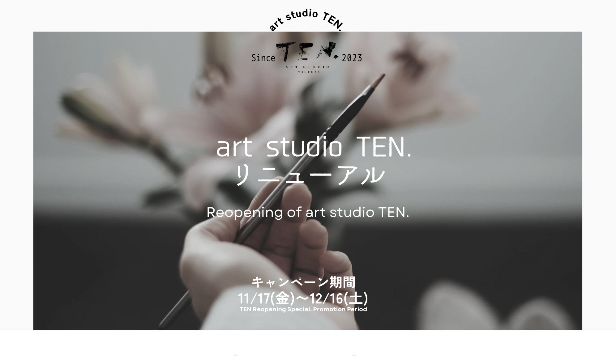 皆さま、まるで秋と冬が日替わりでくるような日々ですが、いかがお過ごしでしょうか。このたび、11月6日(水)から12月23日(月)までの期間、お得なキャンペーンを実施しています。シェア・アトリエも絵画教室も、入会金無料のチャンスです!ぜひお気軽にご利用ください。<<キャンペーン期間>> 2024年11月6日(水)〜2024年12月23日(月)1.シェア・アトリエhttps://artstudio-ten.com/shared-atelier/ <キャンペーンの内容>▶︎2時間500円で何度でもご利用可能▶︎当日ご利用の翌日までにご入会いただくと入会金が無料(12/26までにご入会で入会金60%OFF)<シェア・アトリエの営業時間(予約制)>月曜:10:00~18:00金曜:13:30-21:00▶▶︎ご利用の際は、以下よりご予約ください。https://artstudio-ten.com/bookyourseat/〜シェア・アトリエとは〜絵を描くためのコワーキングスペースです。大人版の美術部のような環境。1.絵画教室https://artstudio-ten.com/classes/ <キャンペーンの内容>▶︎体験翌日までのご入会で入会金(通常10,000円)が無料!▶︎体験後1週間以内の入会で、入会金が60%OFFに!<教室の種類>・大人向けのクラス:絵画教室(油彩、色鉛筆など)、デッサン教室・小学生向けクラス:アートスクール、英語絵画クラブ ▶▶︎ご利用の際は、以下よりご予約ください。https://reserva.be/artstudio10pre-----------------お気軽にごお問い合わせください。https://artstudio-ten.com/access/Hello everyone,It feels like autumn and winter are taking turns visiting us day by day—how are you doing?We’re excited to announce a special offer running from Wednesday, November 6, 2024, to Monday, December 23, 2024!Both our co-creating space and art classes are offering a free enrollment fee during this limited-time promotion. Don’t miss this great opportunity to join us!<Offer Period>November 6, 2024 (Wed) – December 23, 2024 (Mon)1. Co-Creating SpaceLearn more about the Co-Creating Space▶︎Offer Details・Use the space as often as you’d like for just 500 yen per 2 hours.・If you enroll by the day after your visit, your membership fee will be waived.(Enroll by December 26, 2024, for 60% off the membership fee.)▶︎Hours of Operation (by reservation only)Monday: 10:00 AM – 6:00 PMFriday: 1:30 PM – 9:00 PM▶︎How to ReserveBook your seat HEREAbout the Co-Creating SpaceA coworking space designed for making art. Thinkof it as an adult version of an art club—a space where creativity thrives!2. Art ClassesExplore our Art Classes▶︎Offer Details・Join us by the day after your trial lesson to waive the membership fee (normally 10,000 yen).・Join us within one week of your trial lesson to enjoy 60% off the membership fee!▶︎Class TypesFor Adults:Oil Painting, Colored Pencil, Drawing Classes, and more.For Elementary Students:Art School and English Art Club.▶︎How to Book Your Trial LessonReserve your trial lesson HEREIf you have any questions, feel free to contact us!CONTACT USWe look forward to welcoming you!