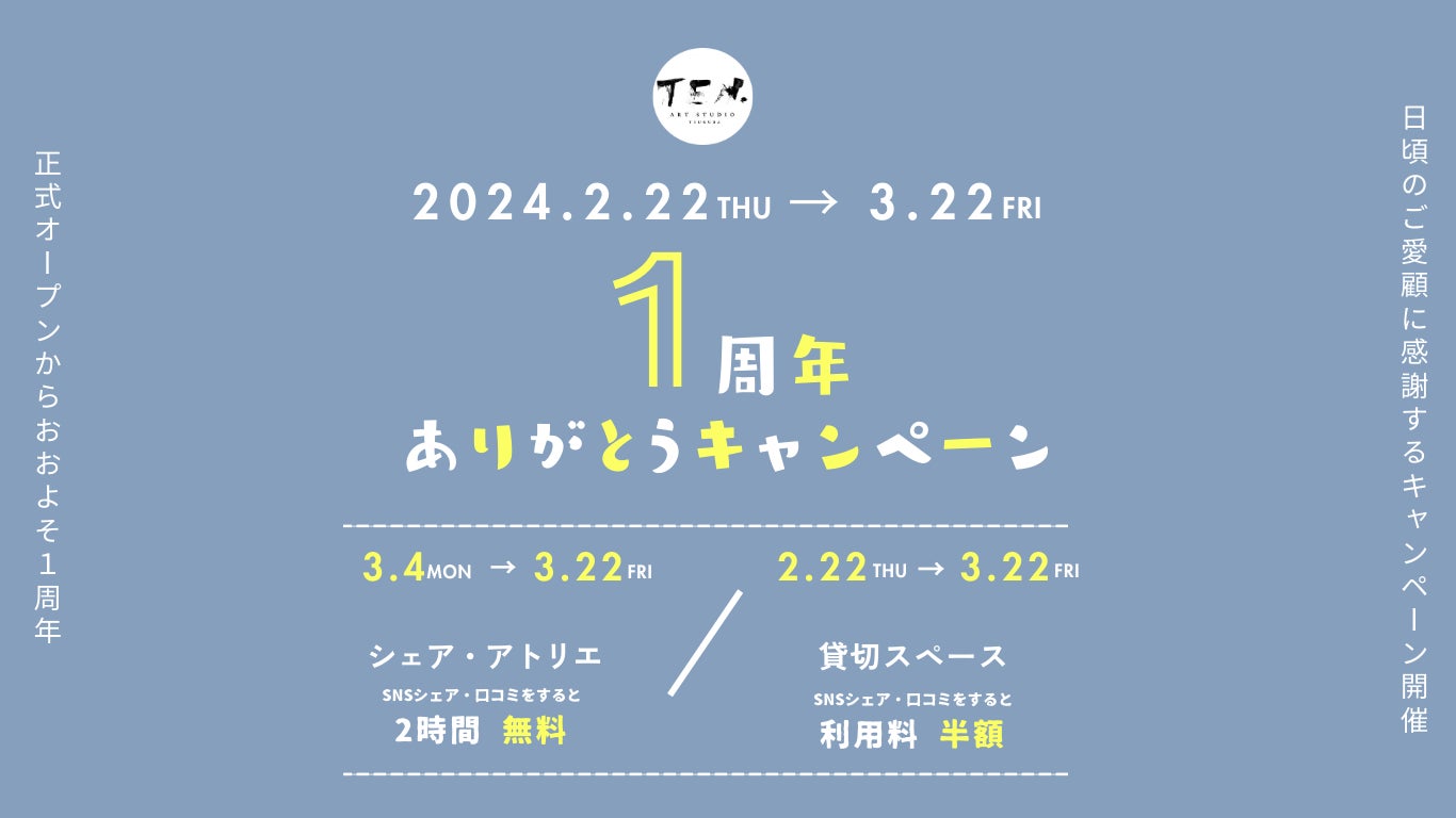 art studio TEN.がプレオープンして1年と3ヶ月、正式オープンして1年を迎えることができました!!