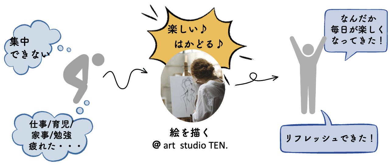 art studio TEN.が、絵を描き始めるきっかけの場所となることで、少しでも幸せな瞬間を感じてもらえたら嬉しいです。